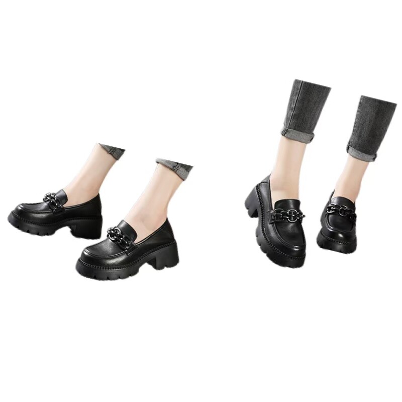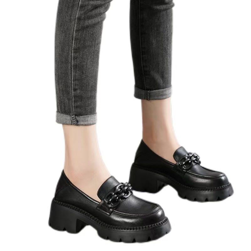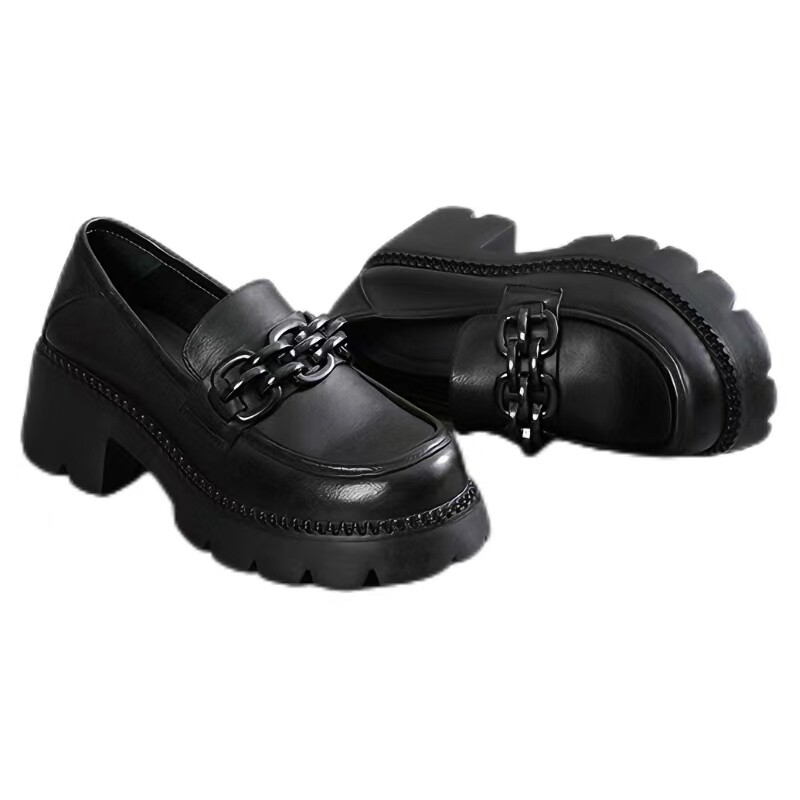 📚 厚底女皮鞋 Black heavy bottom loafers for women real leather