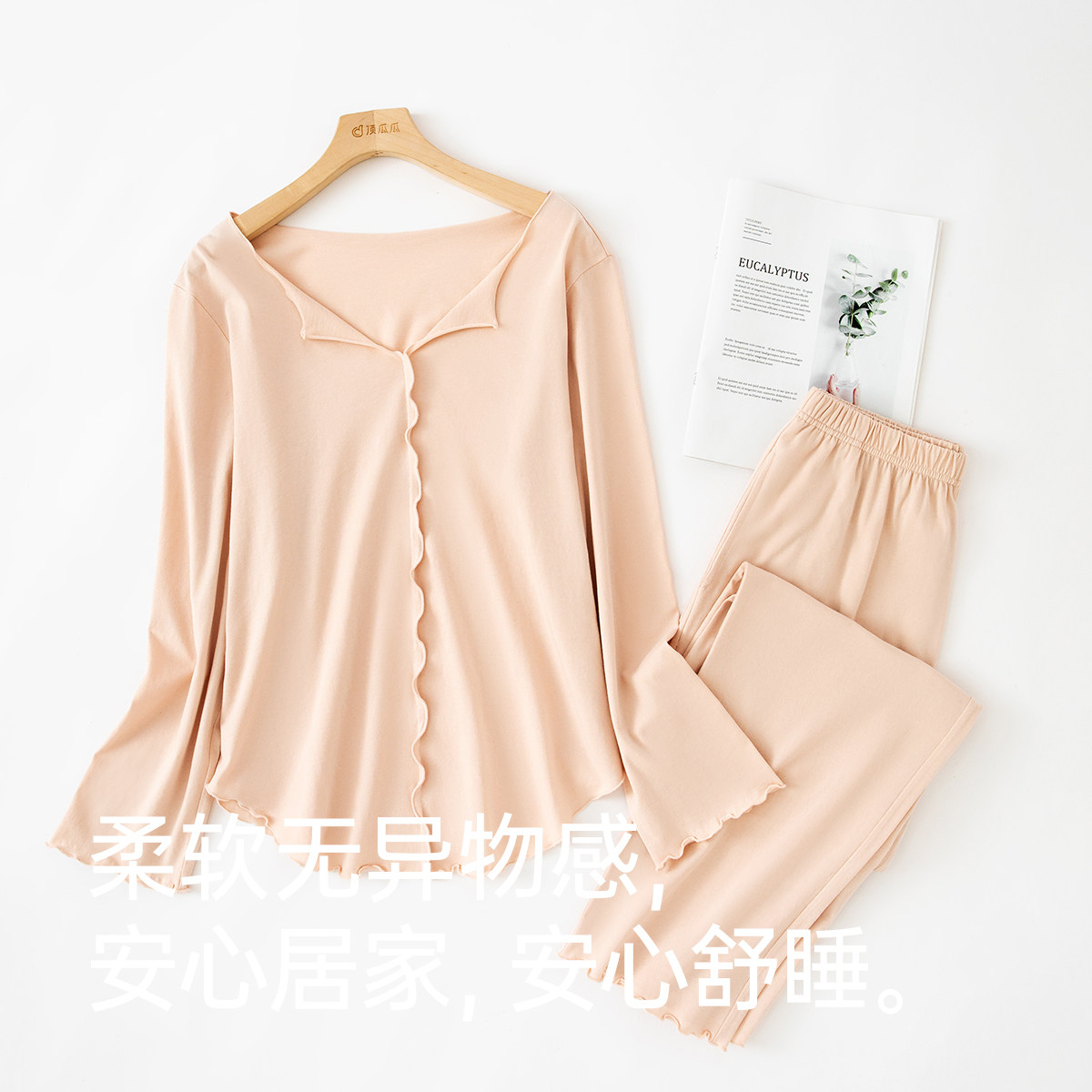 📚 顶瓜瓜女士纯棉宽松纯色套头家居服睡衣套装顶呱呱贴肤柔软阳光棉