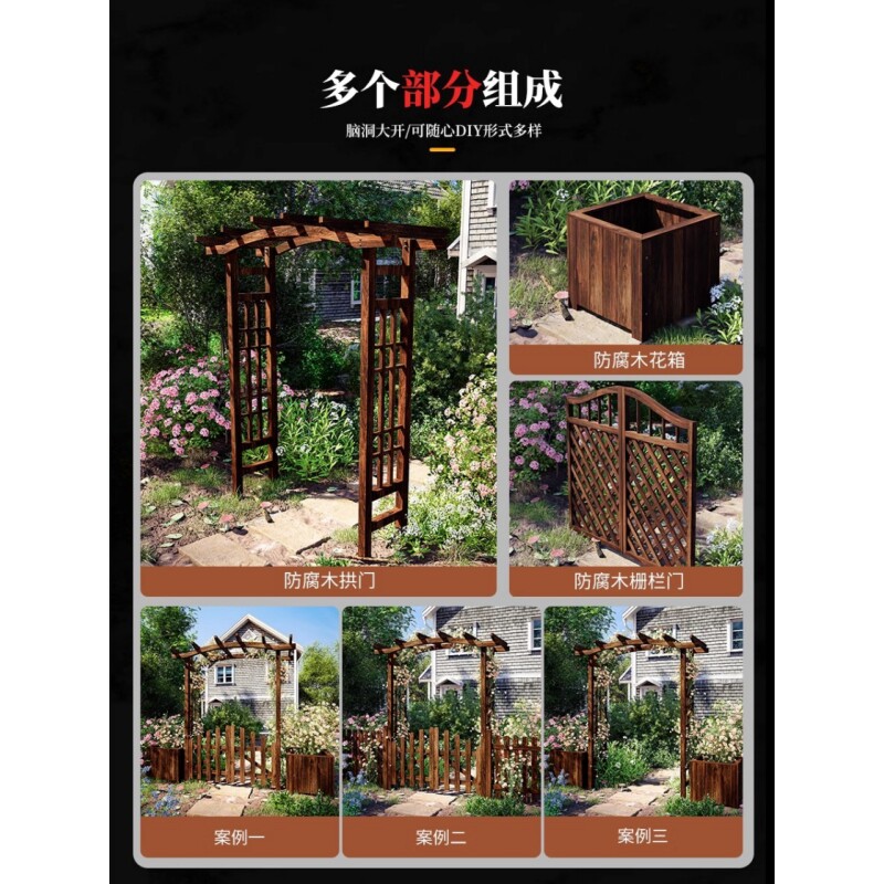 📚 室外防腐木拱门爬藤花架庭院装饰院子门口葡萄架花园农村入户栅栏