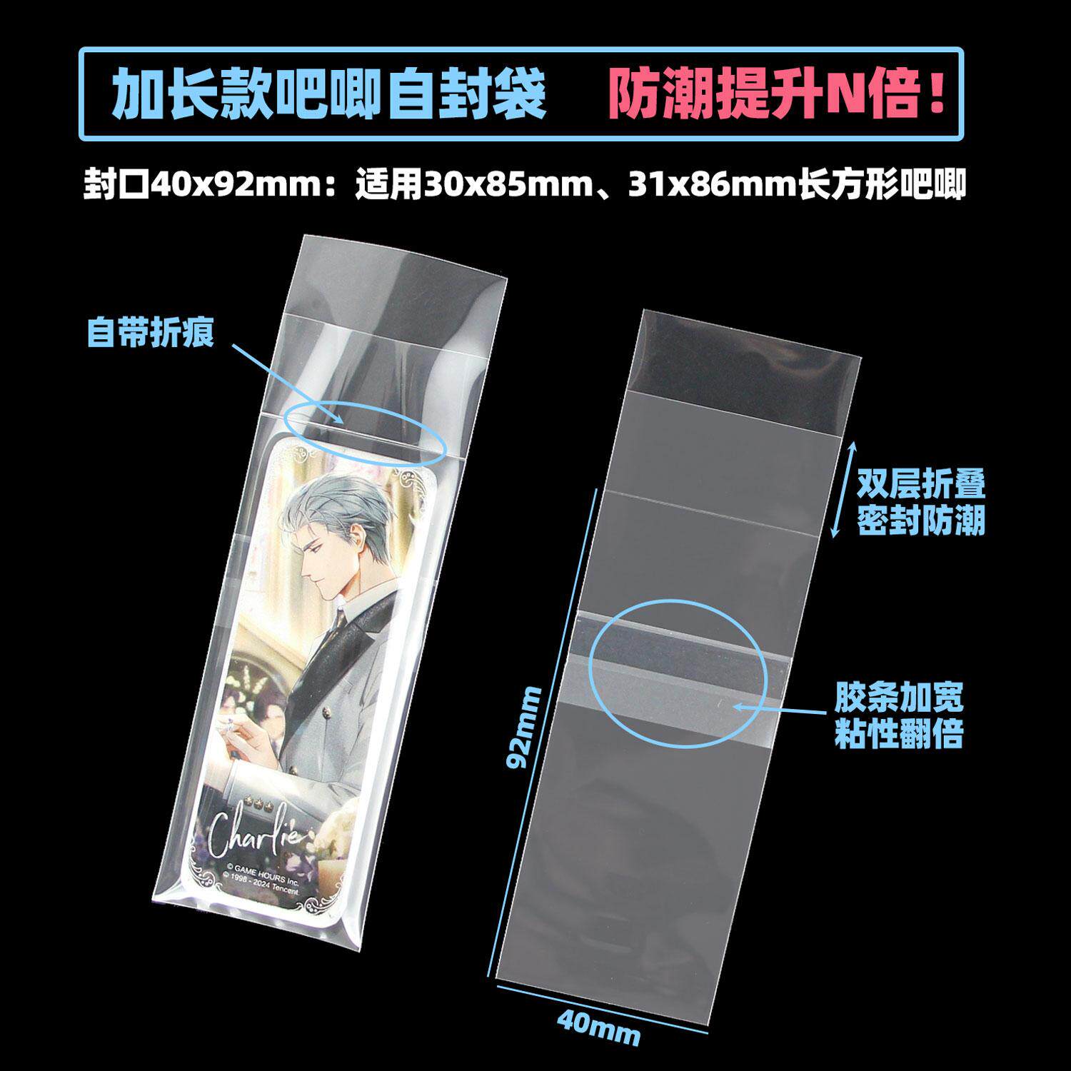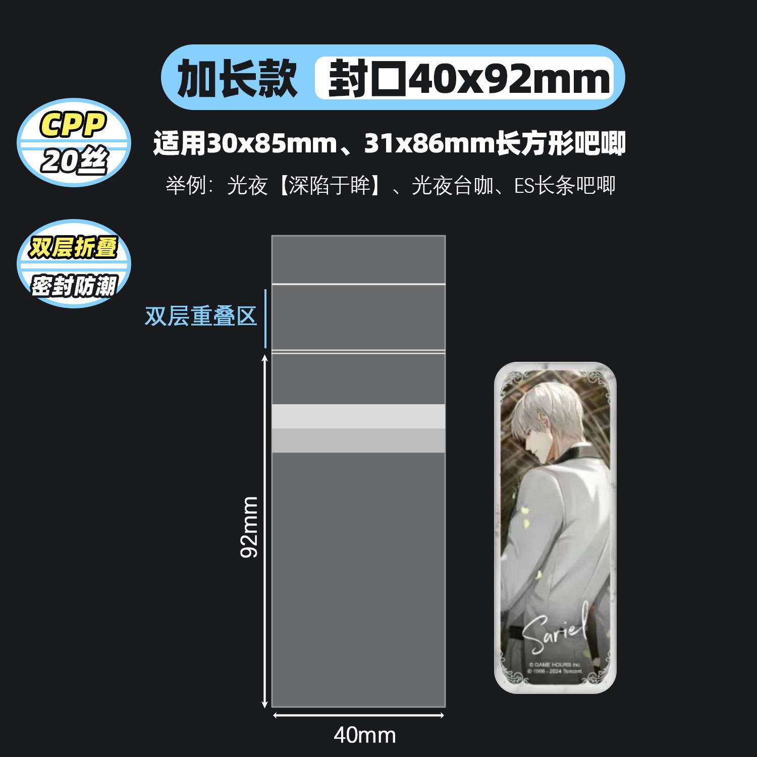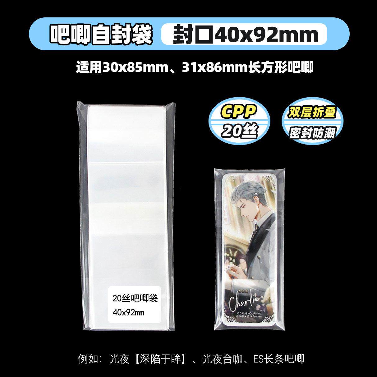 📚 萌key光夜ES长条吧唧自封袋31x86徽章保护套双折痕防潮20丝卡膜