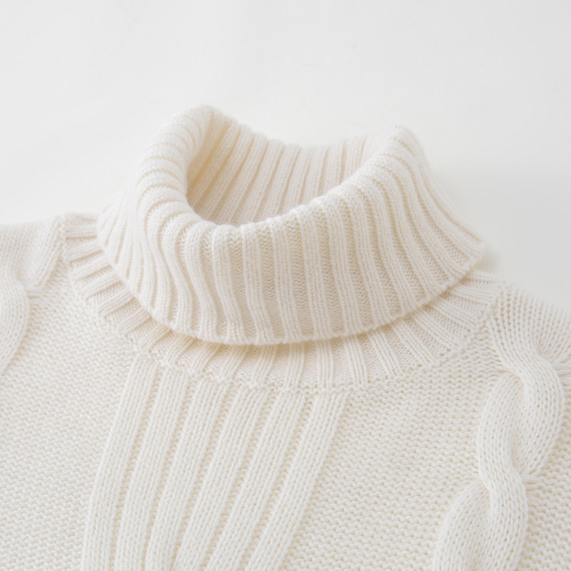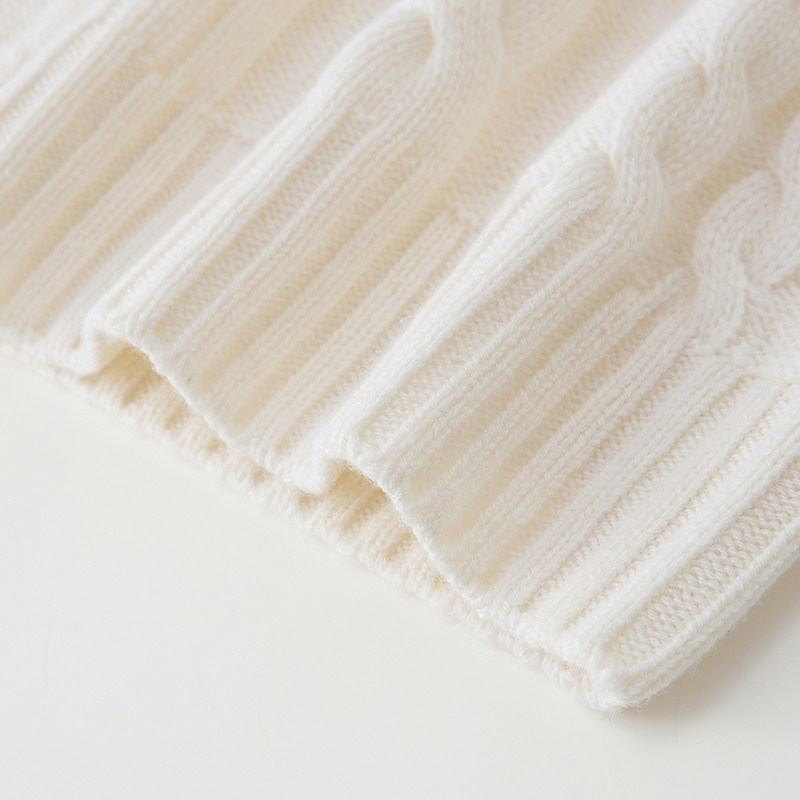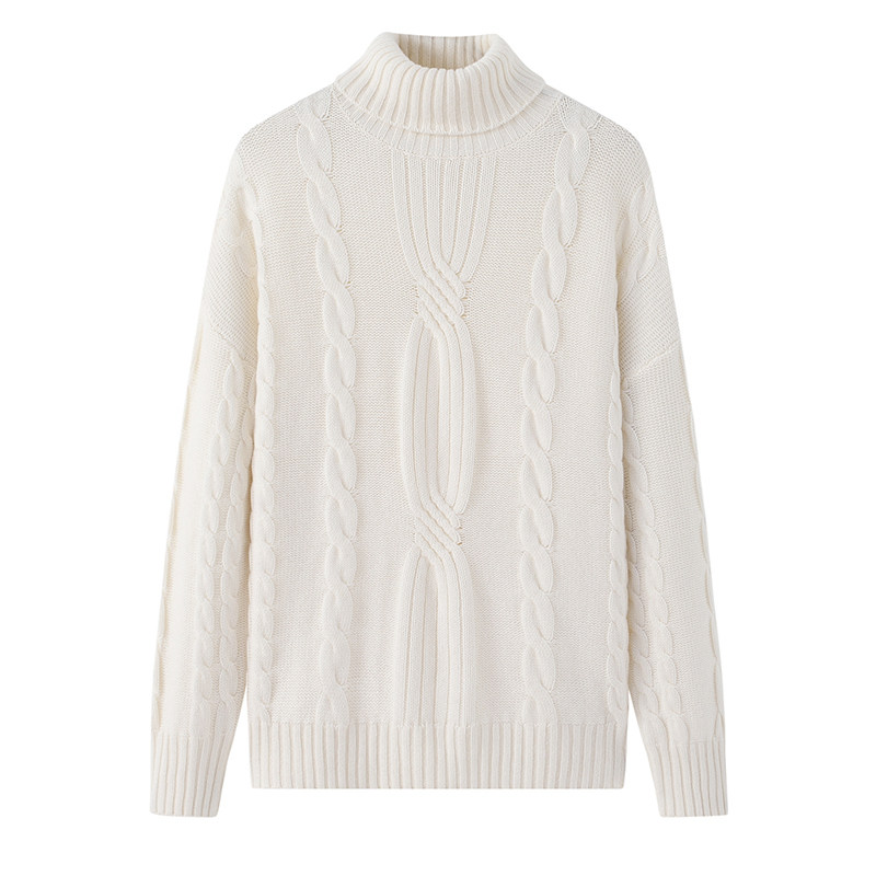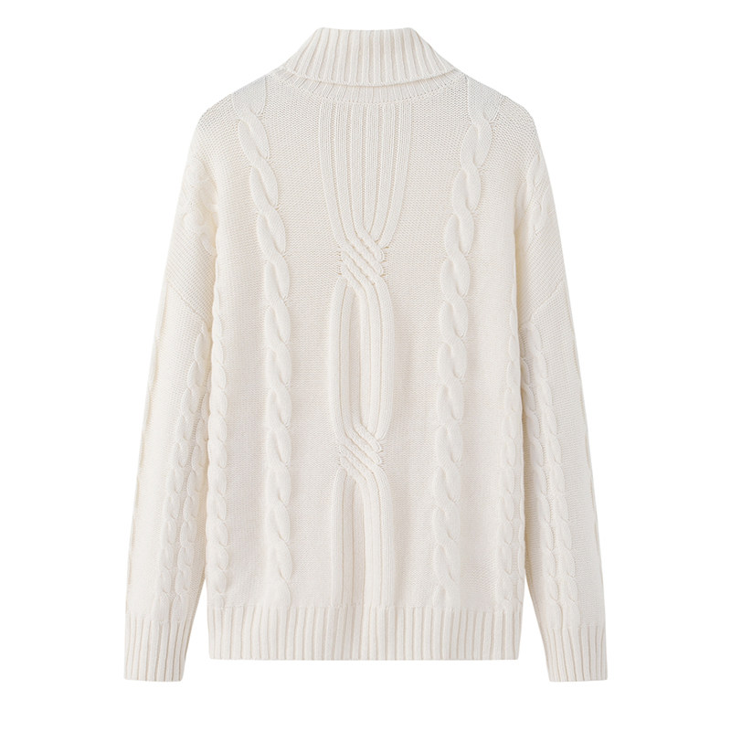 📚 阿绒源山羊绒绞花女套衫可翻高领白色针织衫5针加厚三股宽松毛衣
