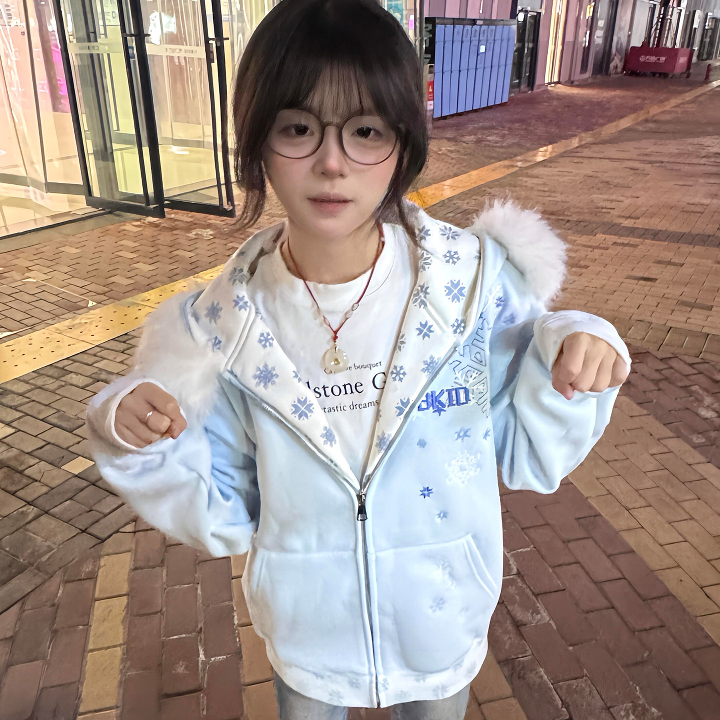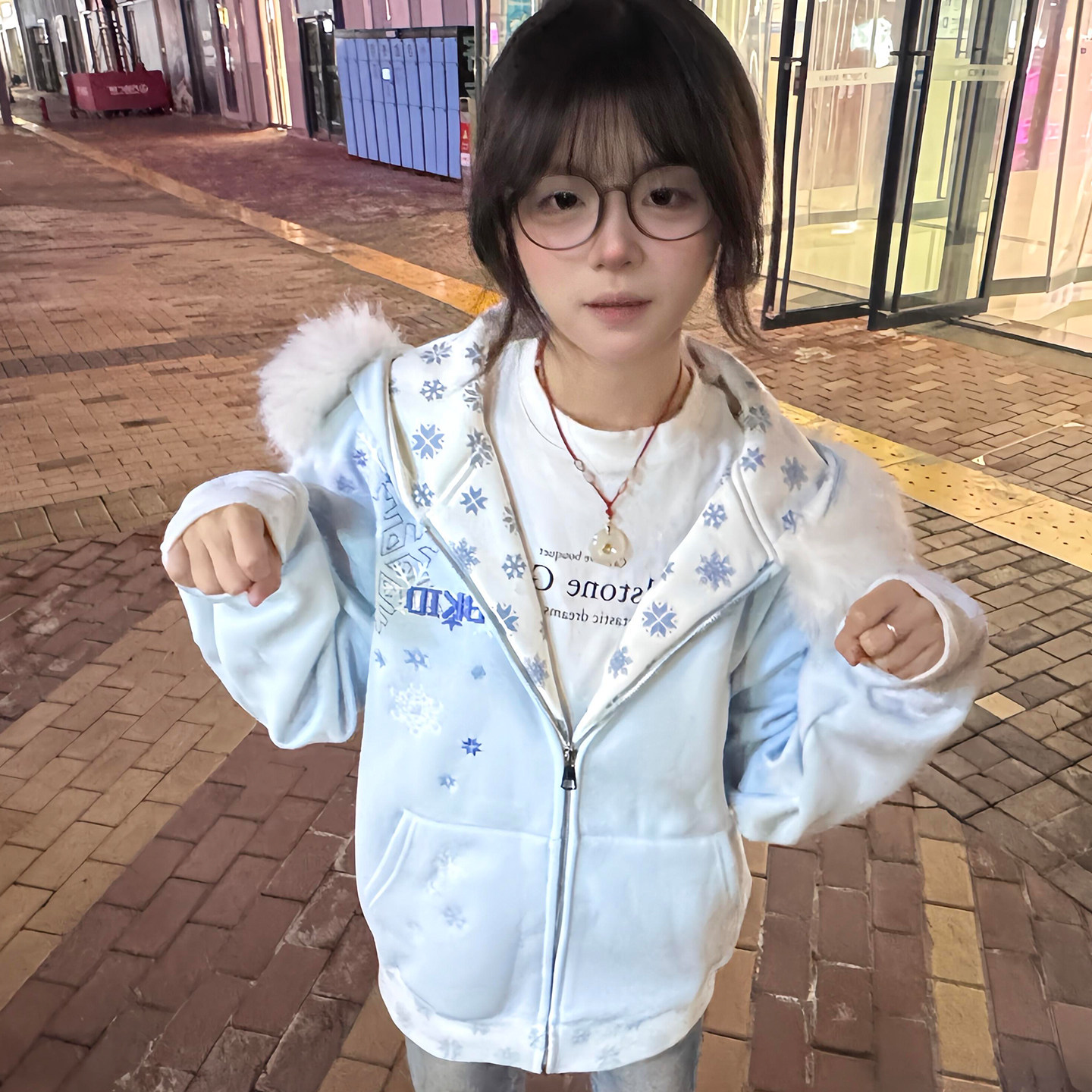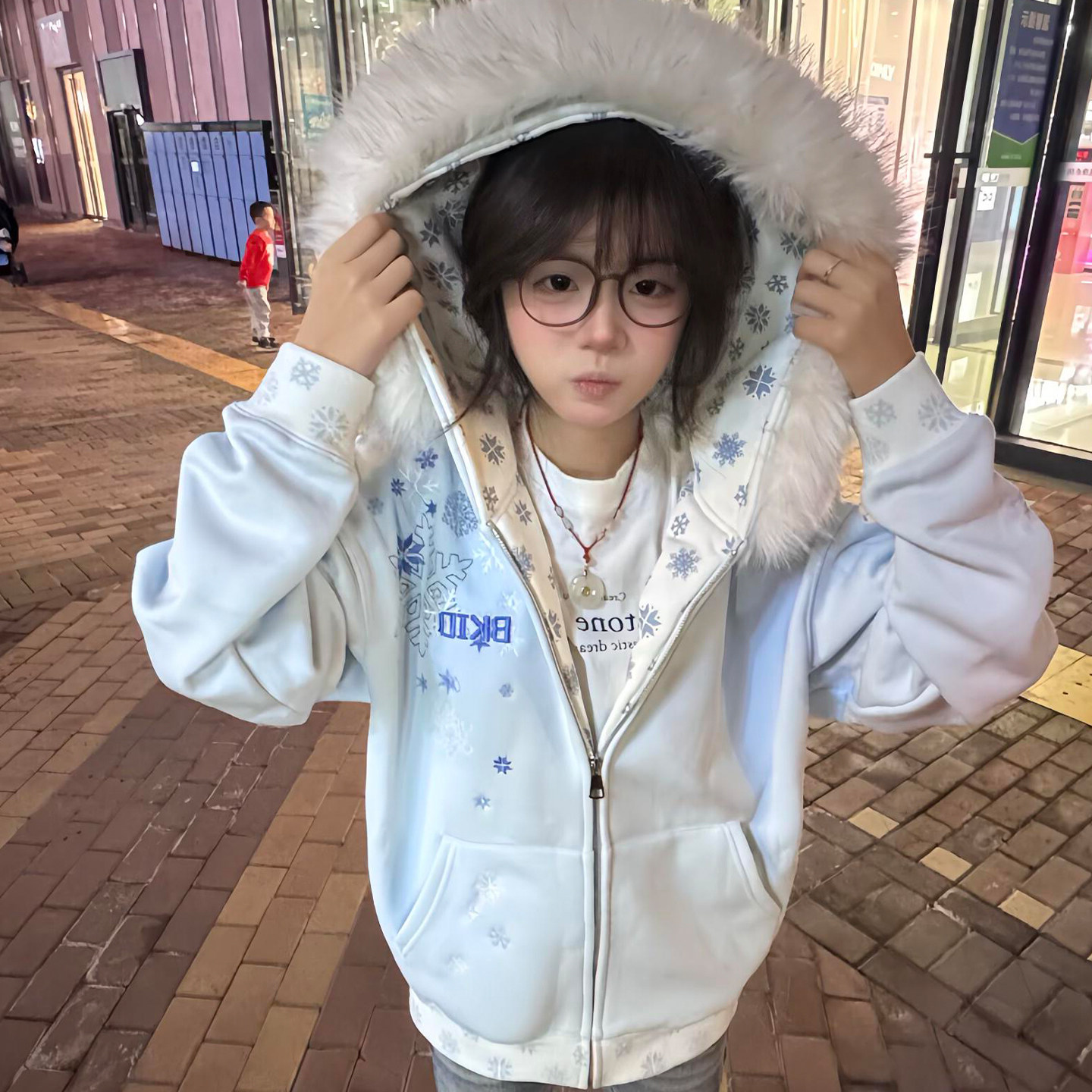 📚 美式复古雪花刺绣连帽卫衣女大童初中高中学生加绒拉链宽松外套潮