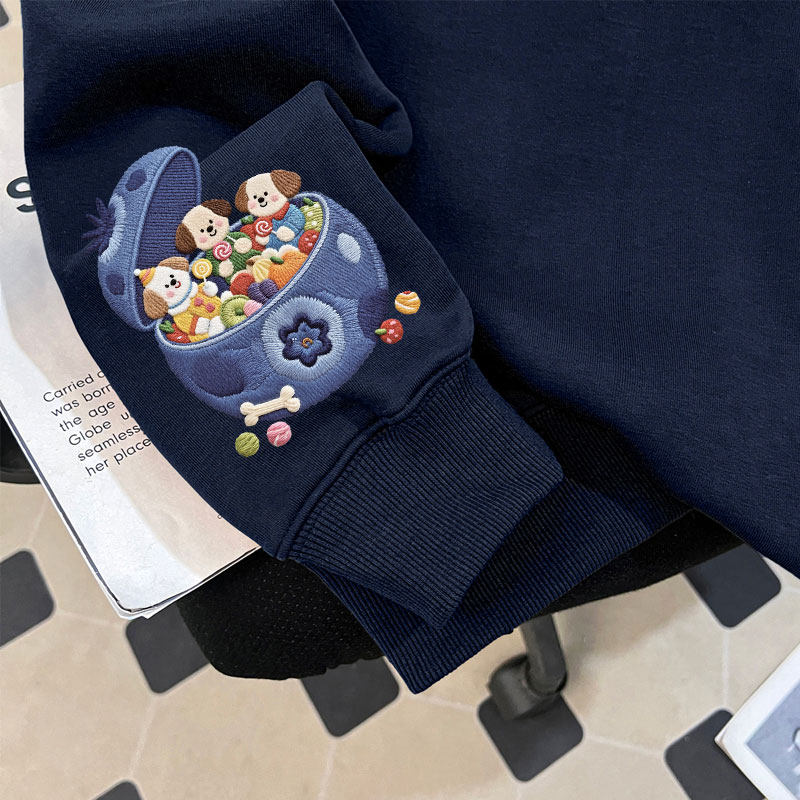 📚 秋冬季蓝莓哆啦A梦仿刺绣女童加绒圆领卫衣初中生洋气潮牌上衣ins