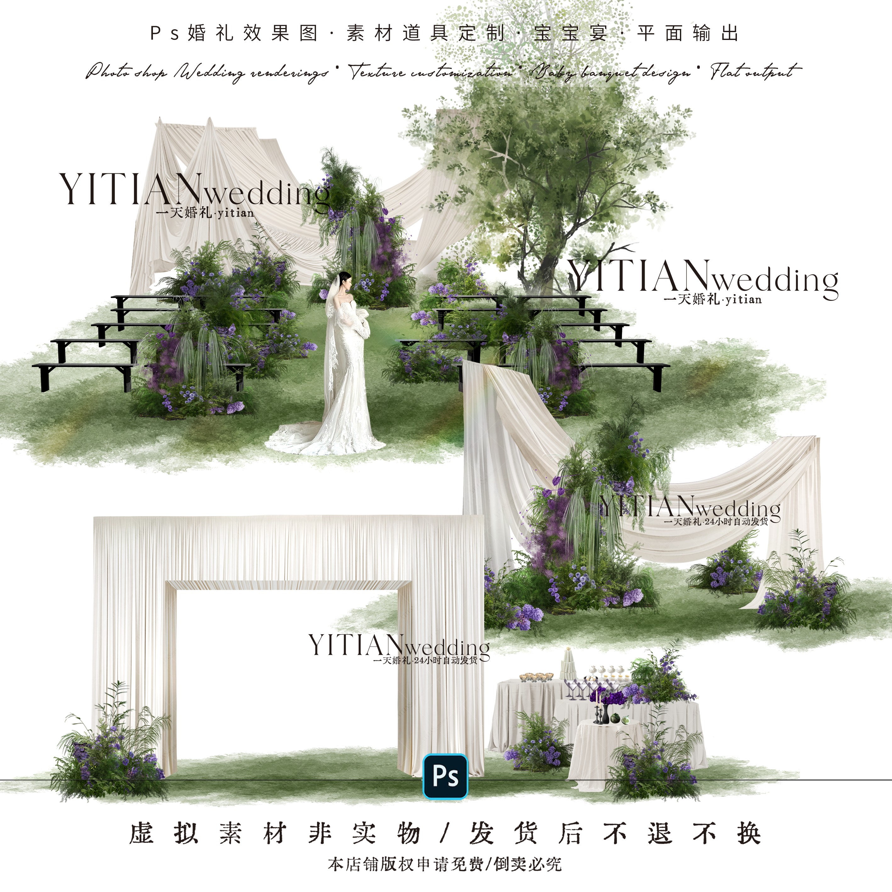 📚 c255白绿紫色韩式布幔婚礼ps文件户外布幔婚礼展示甜品入口合影区