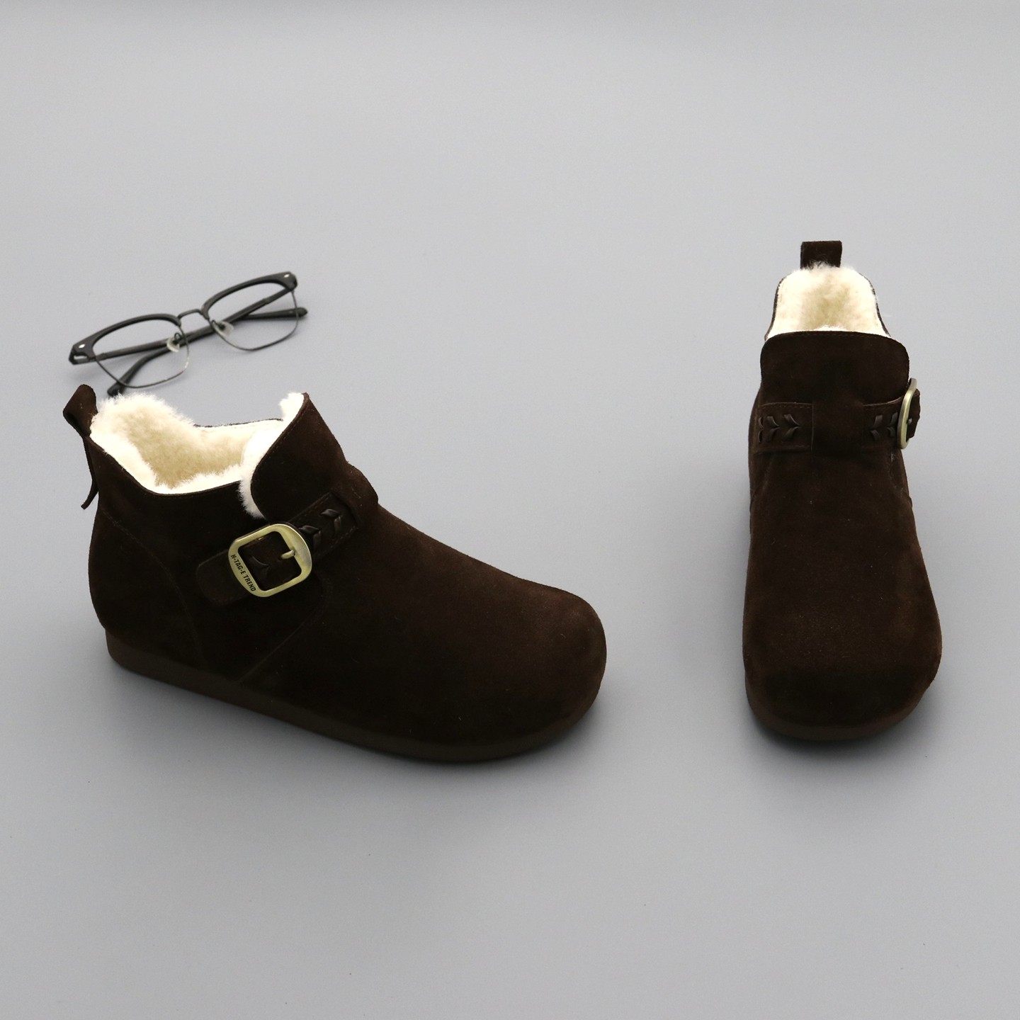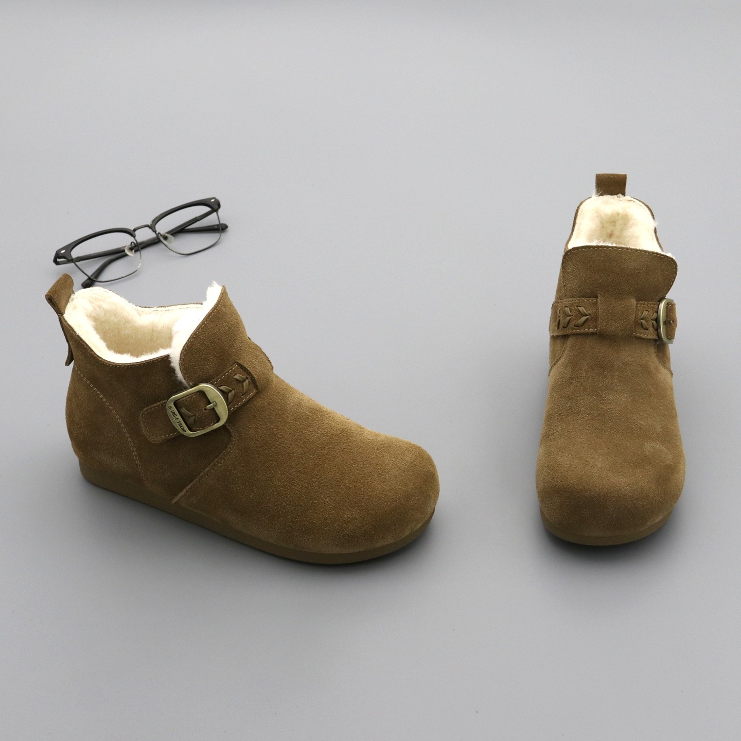 📚 加绒勃肯鞋女高帮棉鞋2025冬季圆头真皮大棉保暖内增高厚底雪地靴