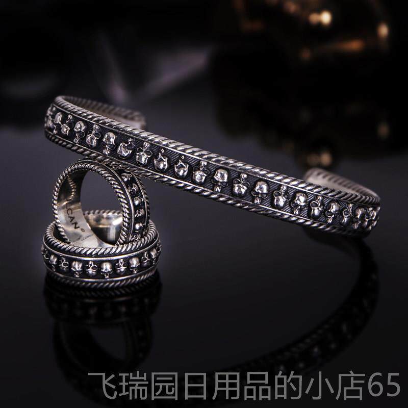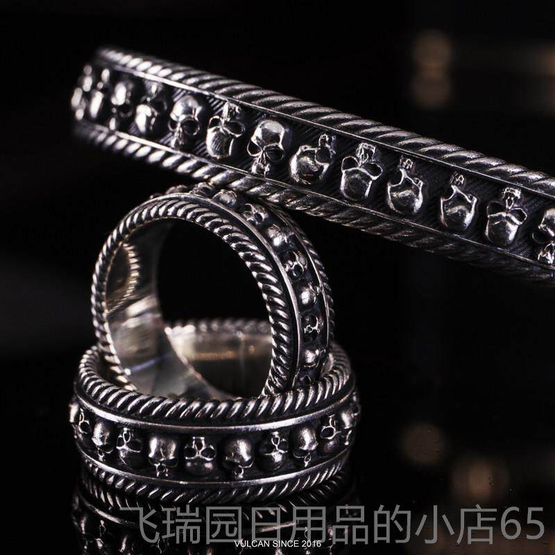 📚 正品VULCN伏尔甘骷髅哈手镯纯银网红机车A流行雷欧美手工骷髅银男