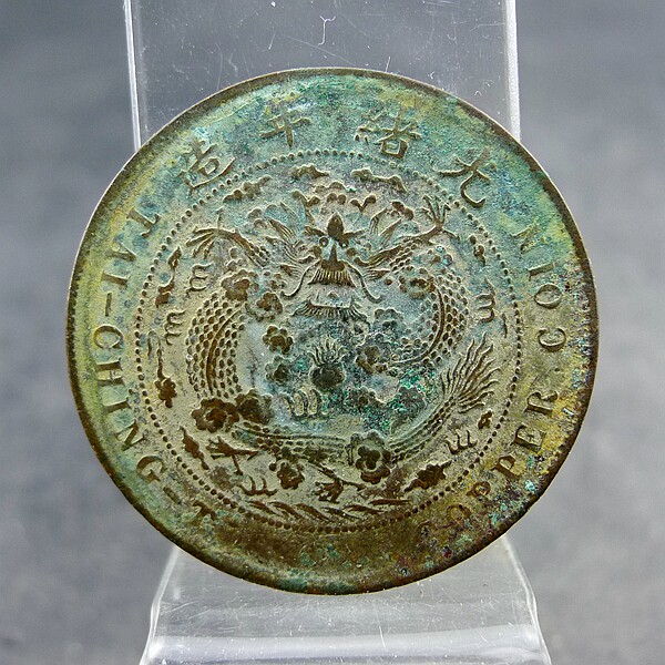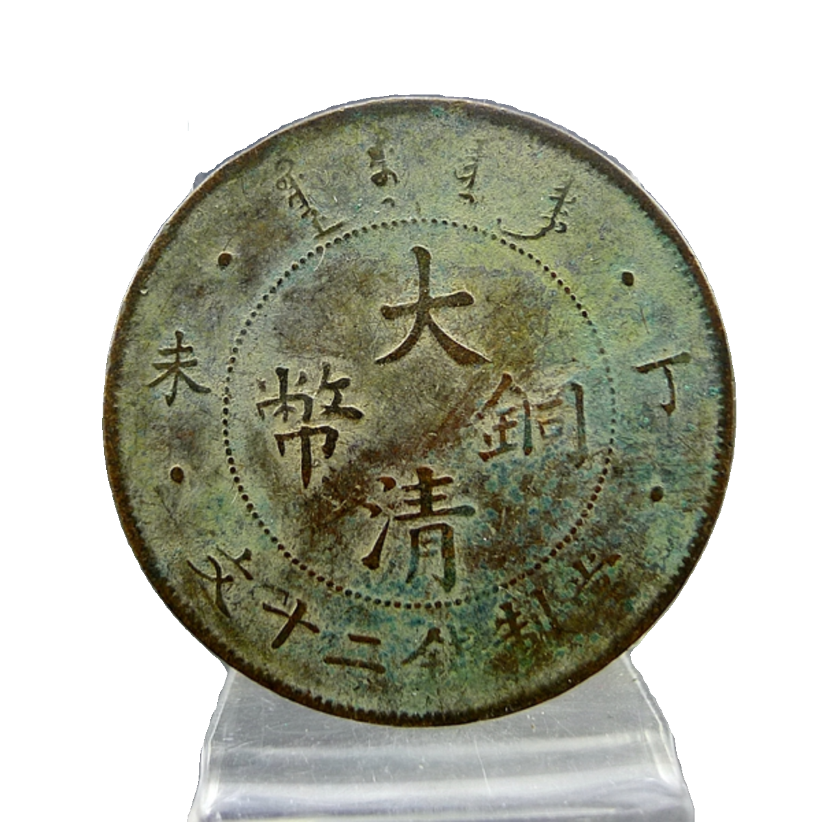 📚 大清铜币丁未当制钱二十文薄版三全全龙鳞铜板铜元保真保老古董古