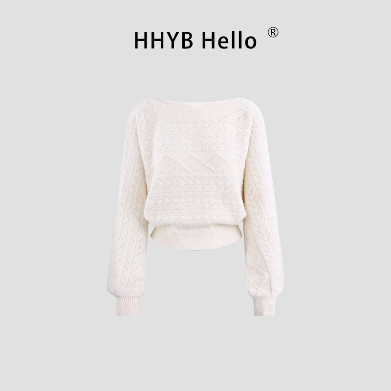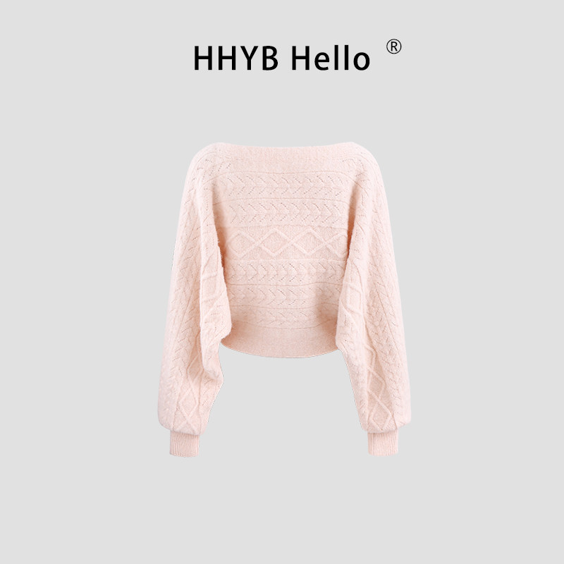 📚 HHYB别来无恙 韩系蝙蝠袖长袖针织上衣秋冬短款百搭毛衣女M1625