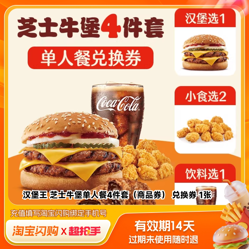 📚 【官播专享】汉堡王大堡汉堡多选1套餐兑换券淘宝闪购超抢手券