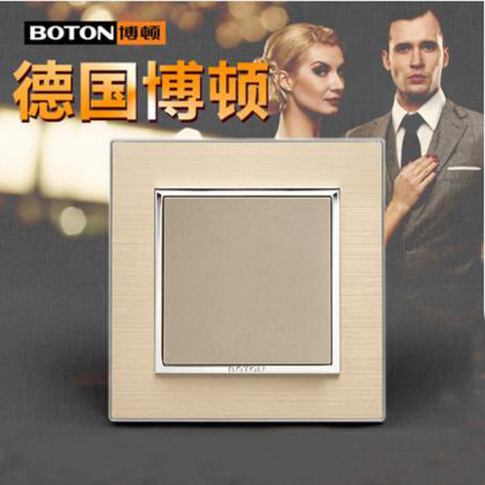 📚 德国博顿开关香槟金拉丝金属面板开关插座钢塑中板 一开双控