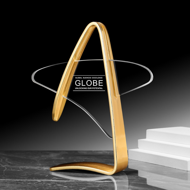 📚 创意定制锌合金奖牌高档水晶金银铜五角星奖杯年度优秀员工颁奖