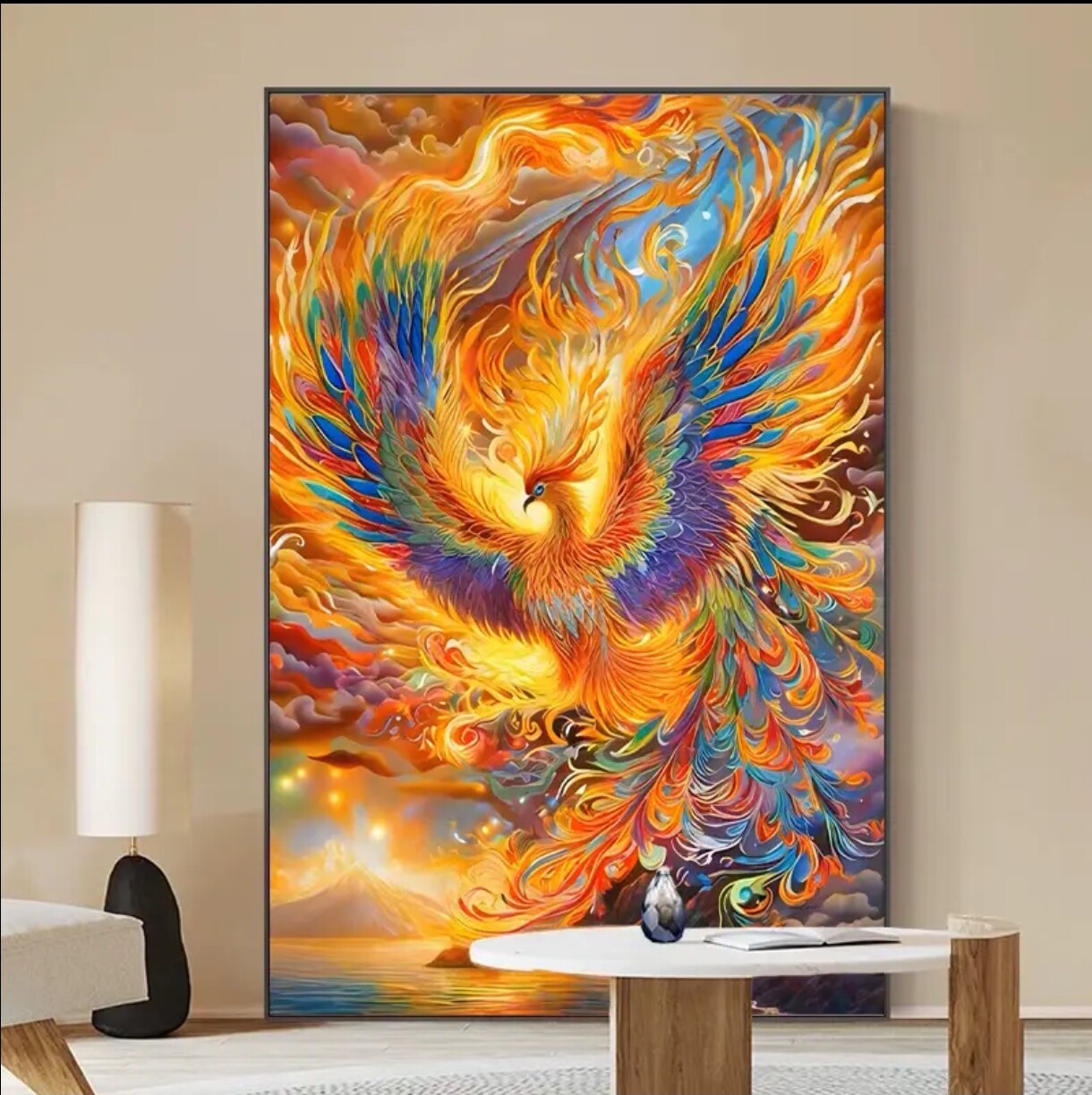📚 01311凤凰涅槃十字绣2024新款客厅卧室中国风竖版手工刺绣