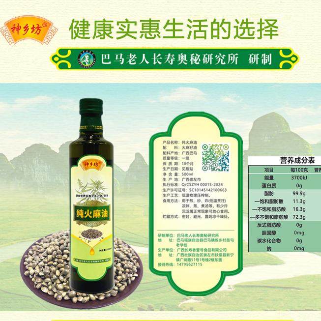 📚 神乡坊巴马纯火麻油物理冷压榨一级火麻籽榨油瓶装食用油广西特产