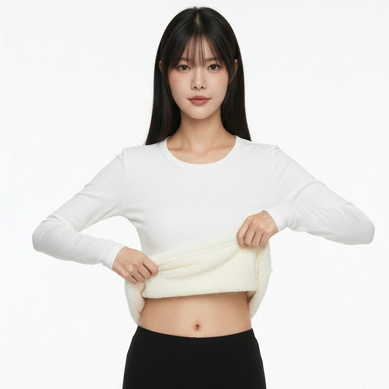 📚 白色内搭圆领中长款遮屁股长袖女t恤修身打底衫上衣德绒纯棉加厚