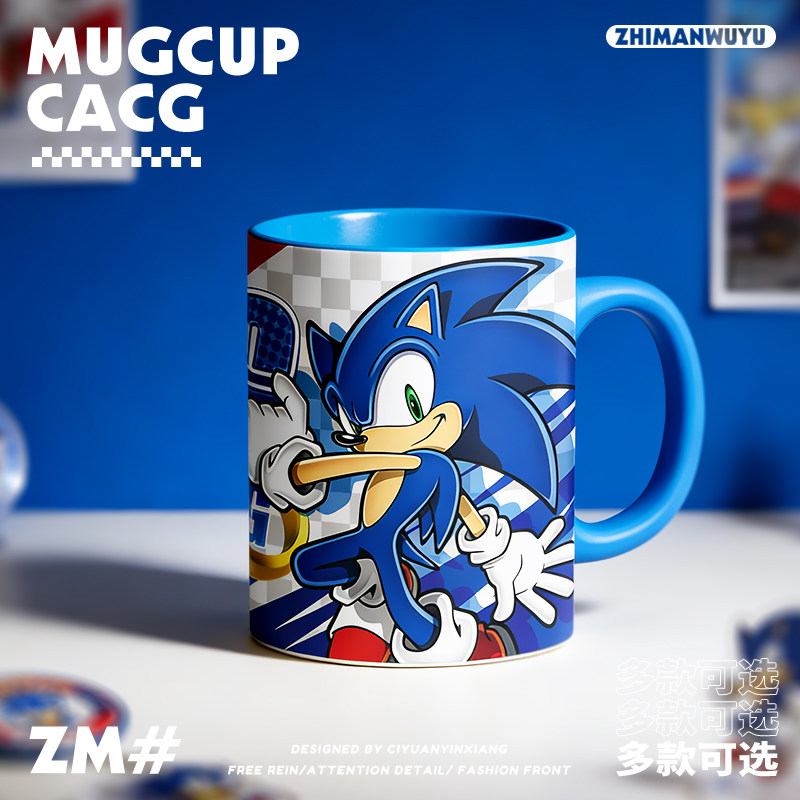 📚 刺猬索尼克游戏同人周边索尼克夏特300ML陶瓷水杯马克杯子咖啡杯