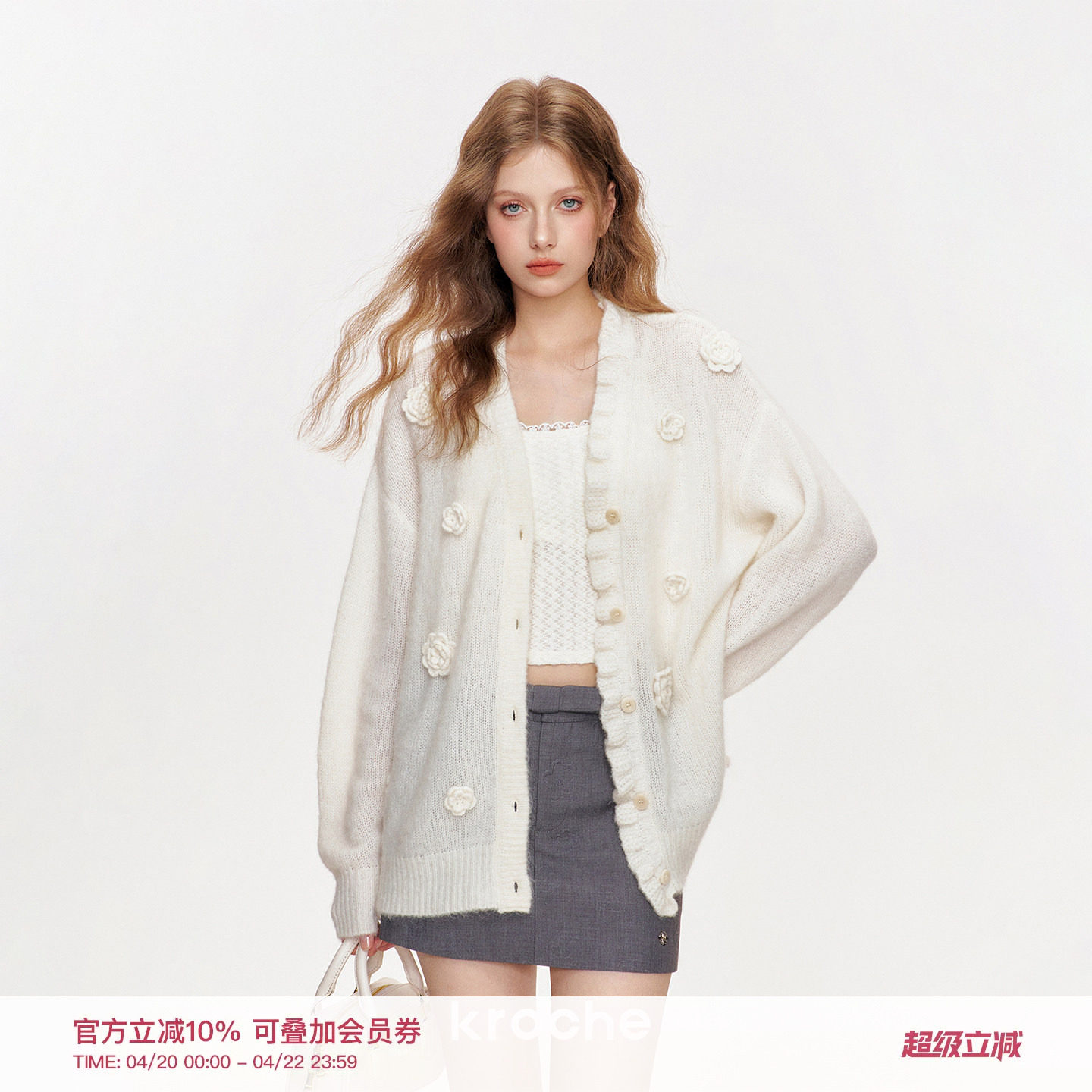 📚 赵今麦同款 Kroche 玫瑰花圃 羊毛针织钩花木耳花边毛衣外套初春