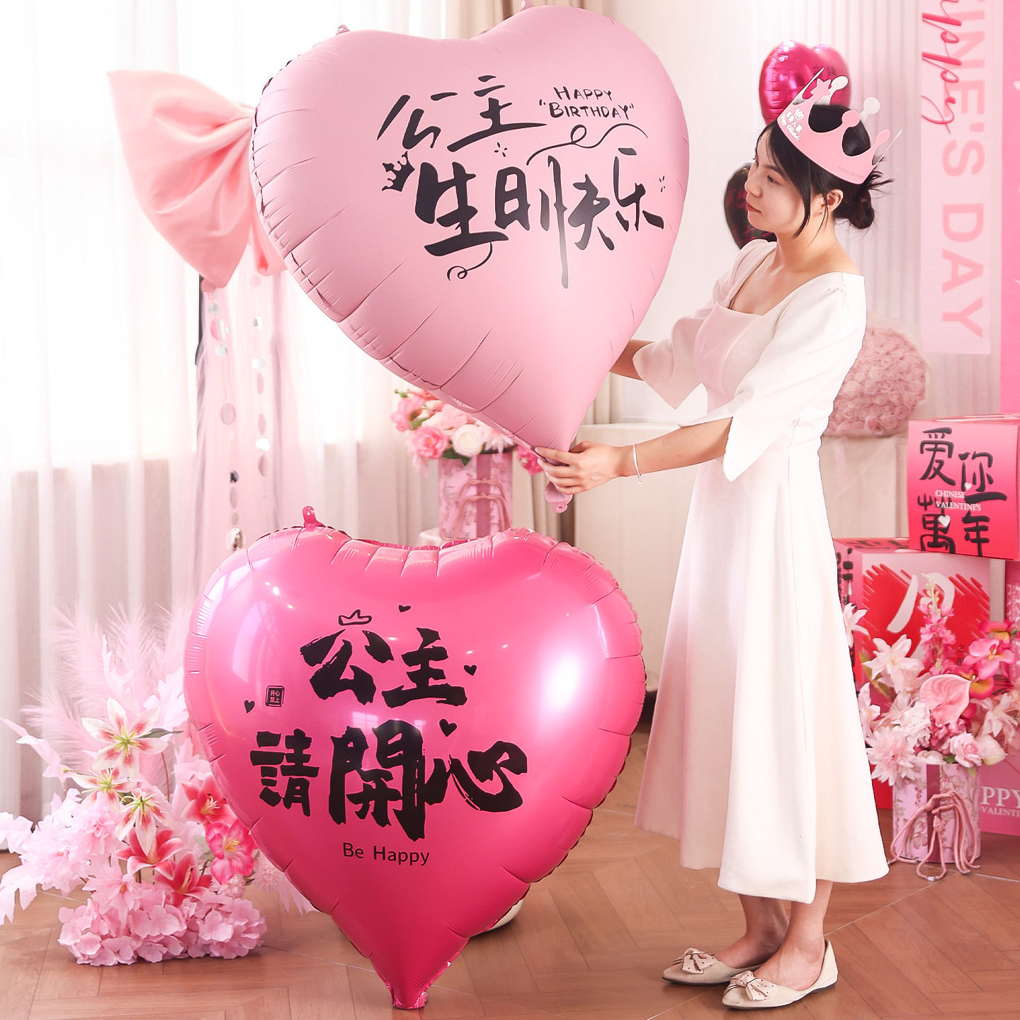 📚 七夕情人节网红爱心气球公主女孩生日快乐场景氛围仪式感布置装饰