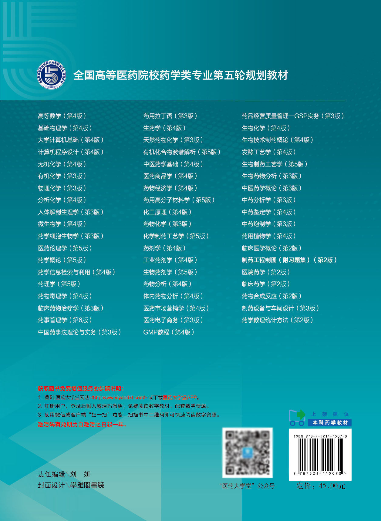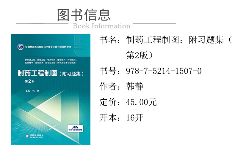 📚 正版现货 制药工程制图 附习题集 第2版二 全国高等医学院校药学类专业第五轮规划教材 韩静 中国医药科技出版社