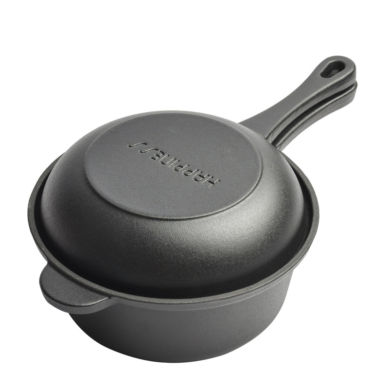 📚 小幸福铸铁18cm两用锅无涂层不生锈珐琅锅厨房两用煎锅小汤锅奶锅