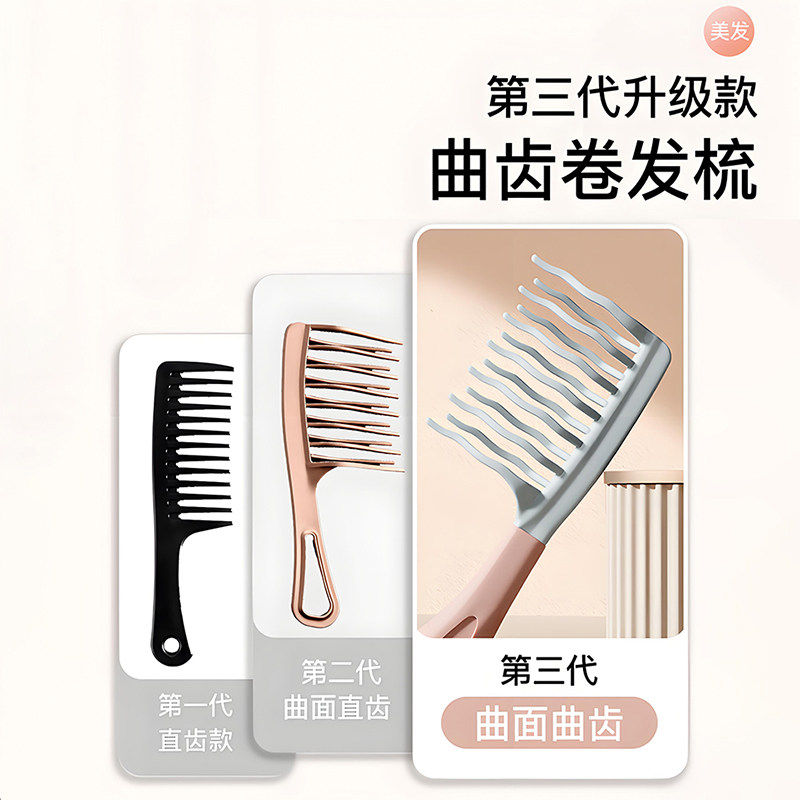 📚 双排波浪齿大齿卷发梳子宽齿不打结顺发女士长发烫发梳专用静电防