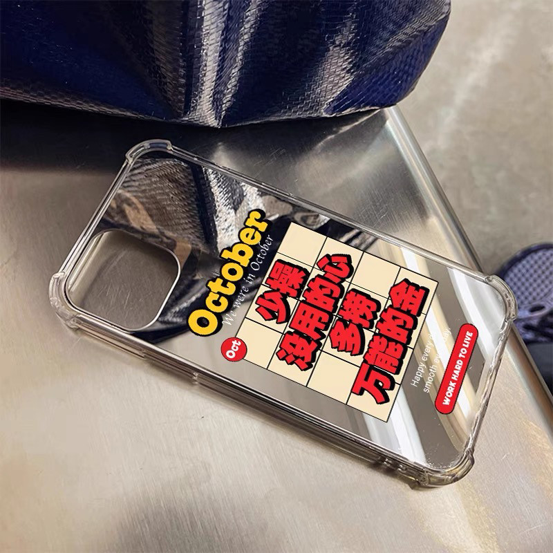 📚 潮流酷文字少操心多捞金适用于苹果14/15手机壳苹果13镜面壳11/12promax高级xs/xr防摔7p创意