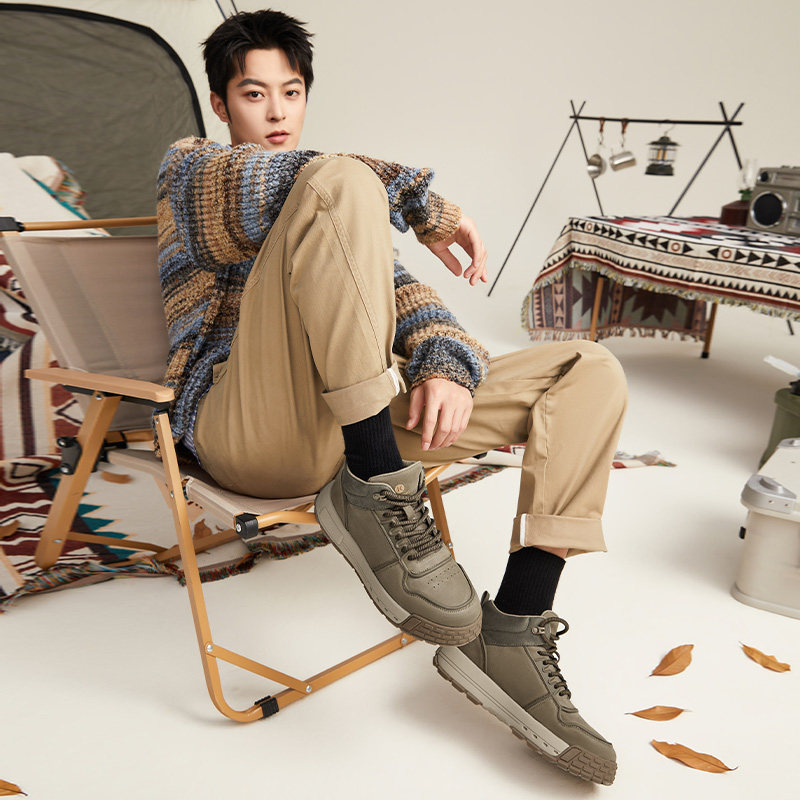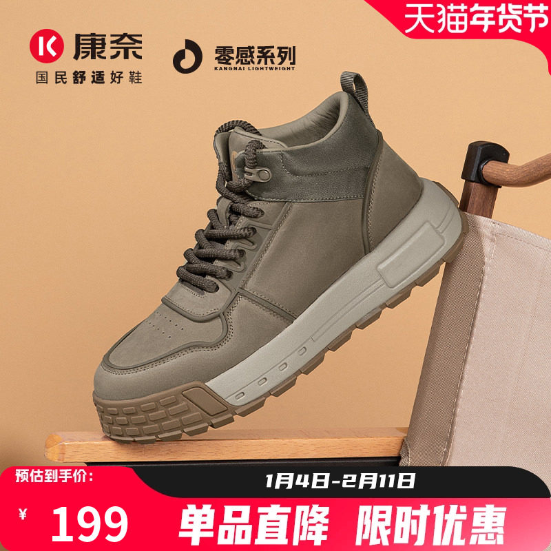 📚 零感系列康奈男鞋冬季板鞋复古男士厚底高帮户外工装鞋