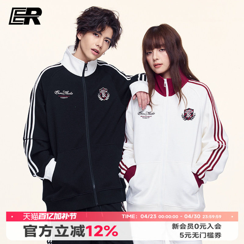 📚 【明星同款】ER泽西风徽章华夫格条纹撞色立领卫衣外套运动套装