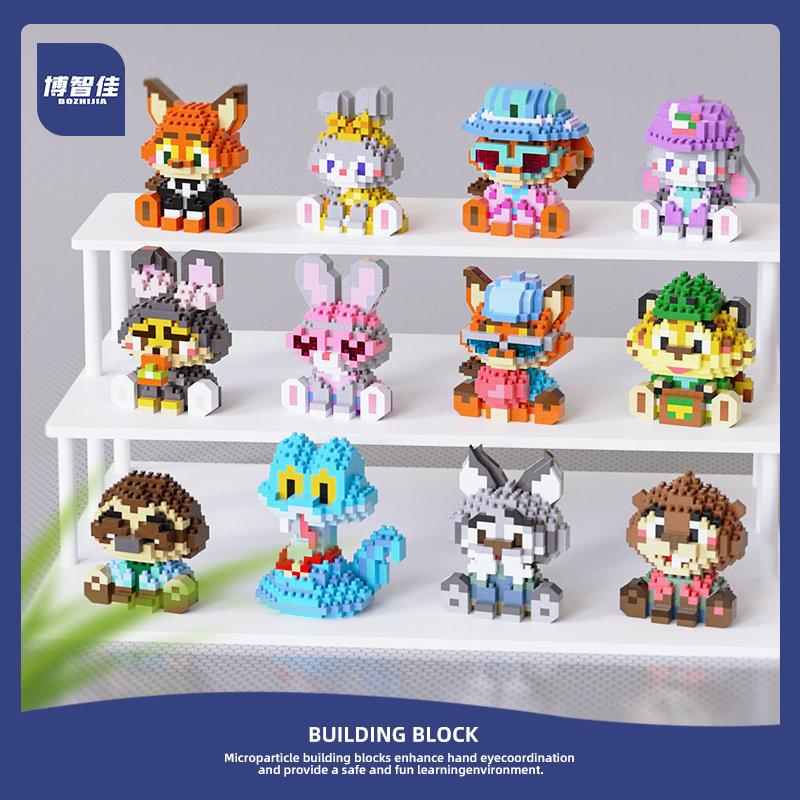 📚 疯狂动物城微颗粒积木朱迪尼克盖瑞积木摆件玩偶爆款便宜3d立体
