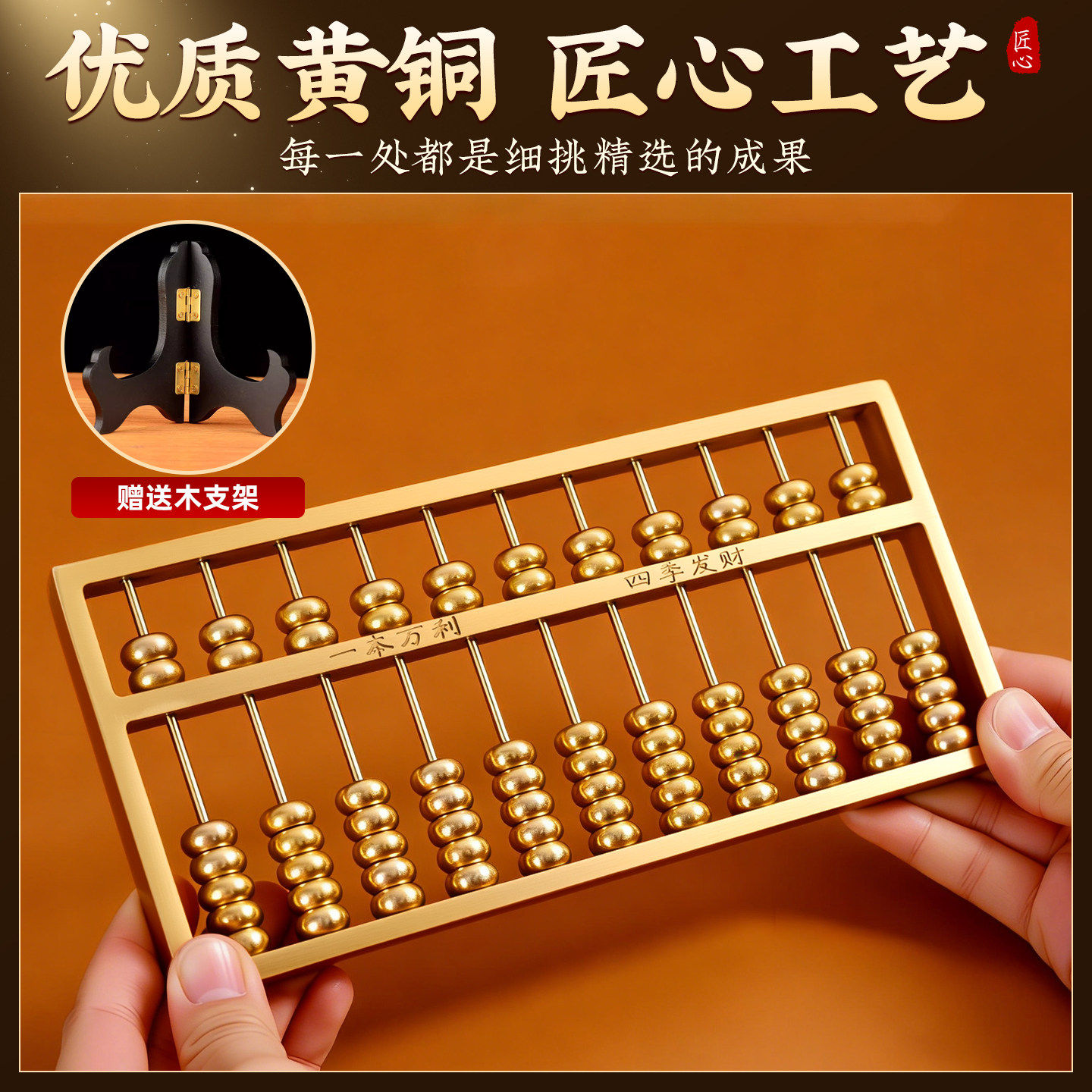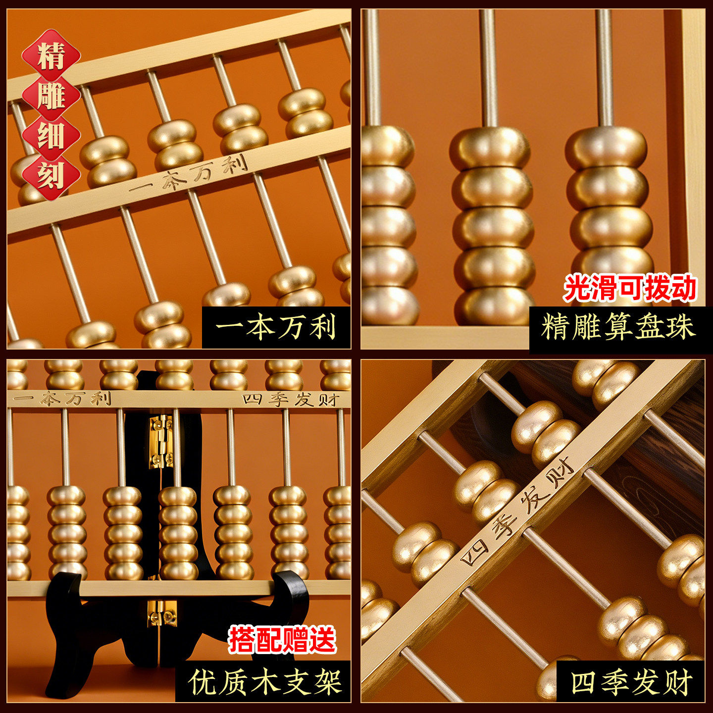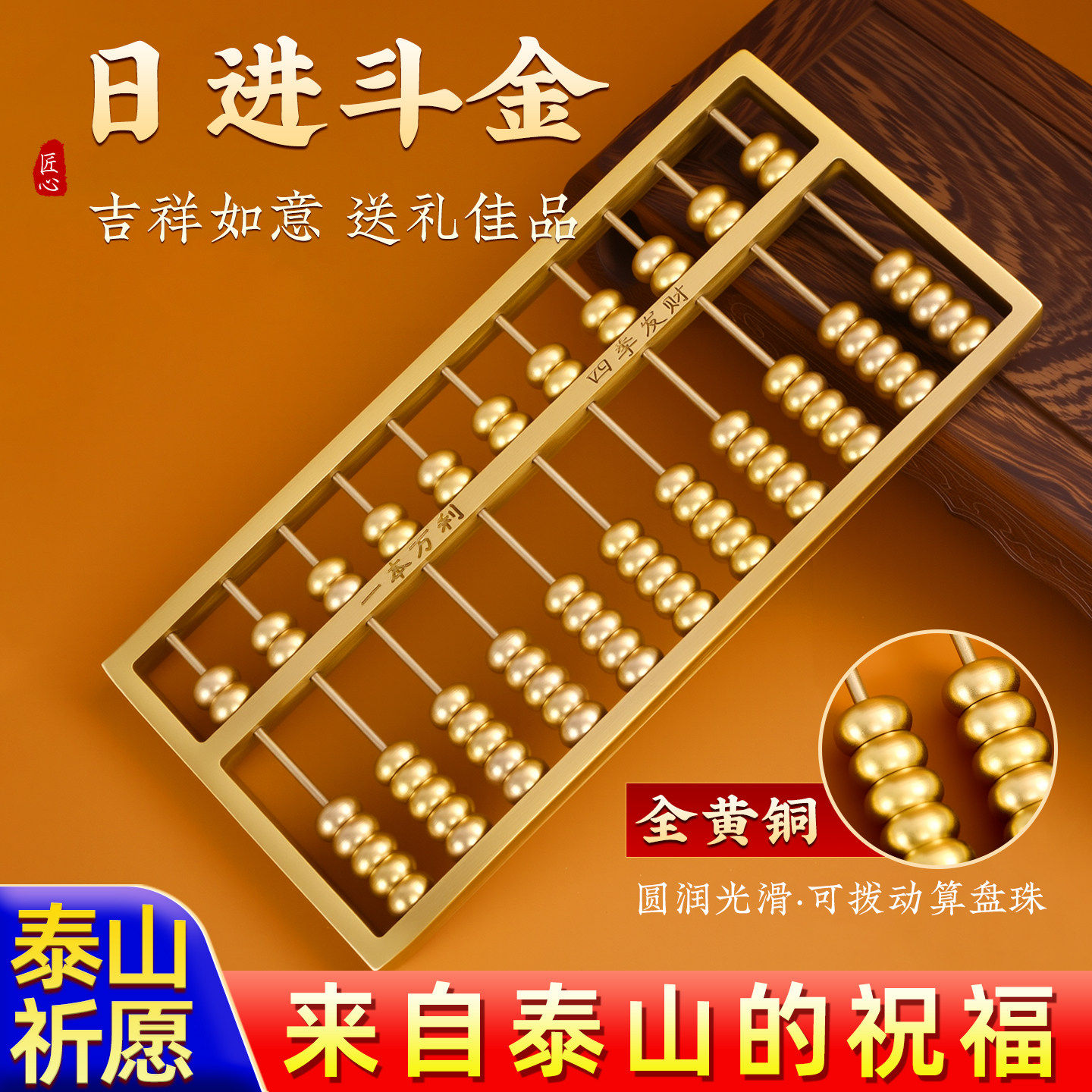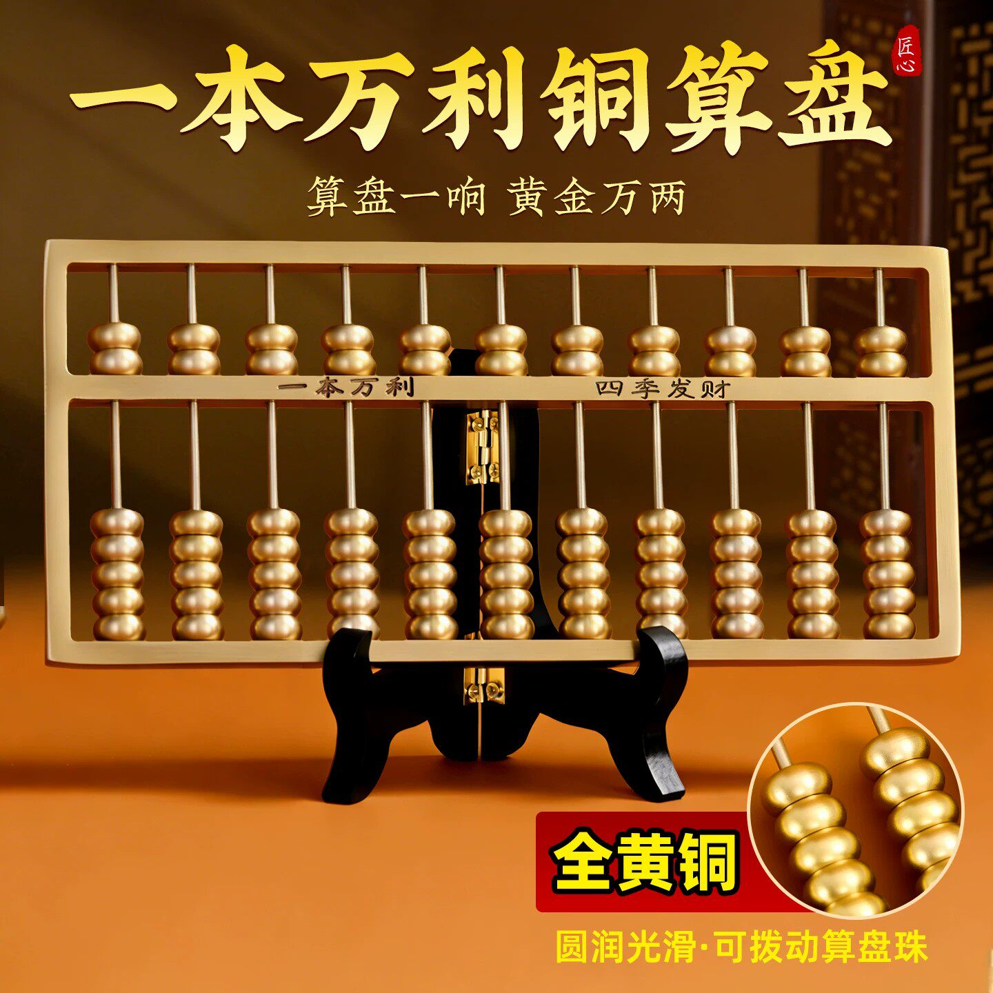 📚 一本万利黄铜算盘摆件老式算盘珠算实心客厅办公室玄关开业装饰品