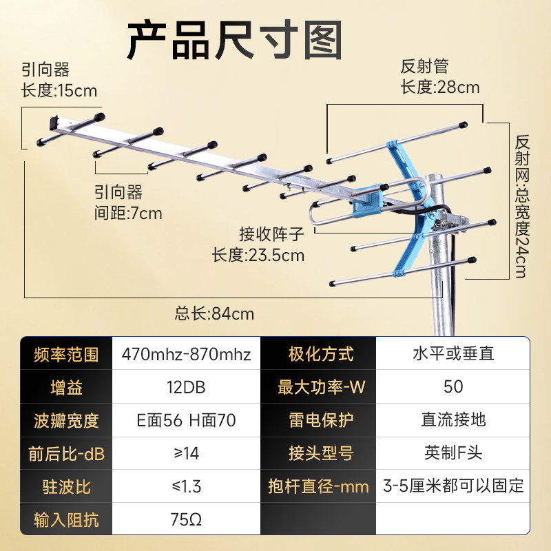 📚 永星增强型九9单元反射网dtmb八木鱼骨电视机天线接收器农村室外定向型数字电视无网络家用免费应急广播474Mh