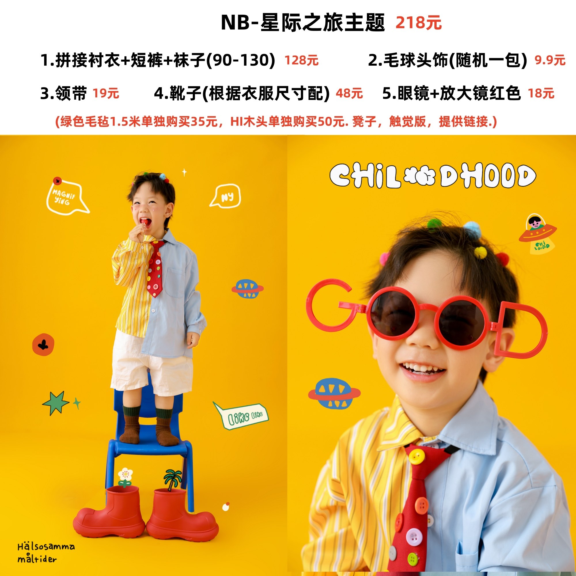 📚 儿童摄影服装星际之旅拼色衬衫多巴胺男女宝宝写真艺术照拍照服装