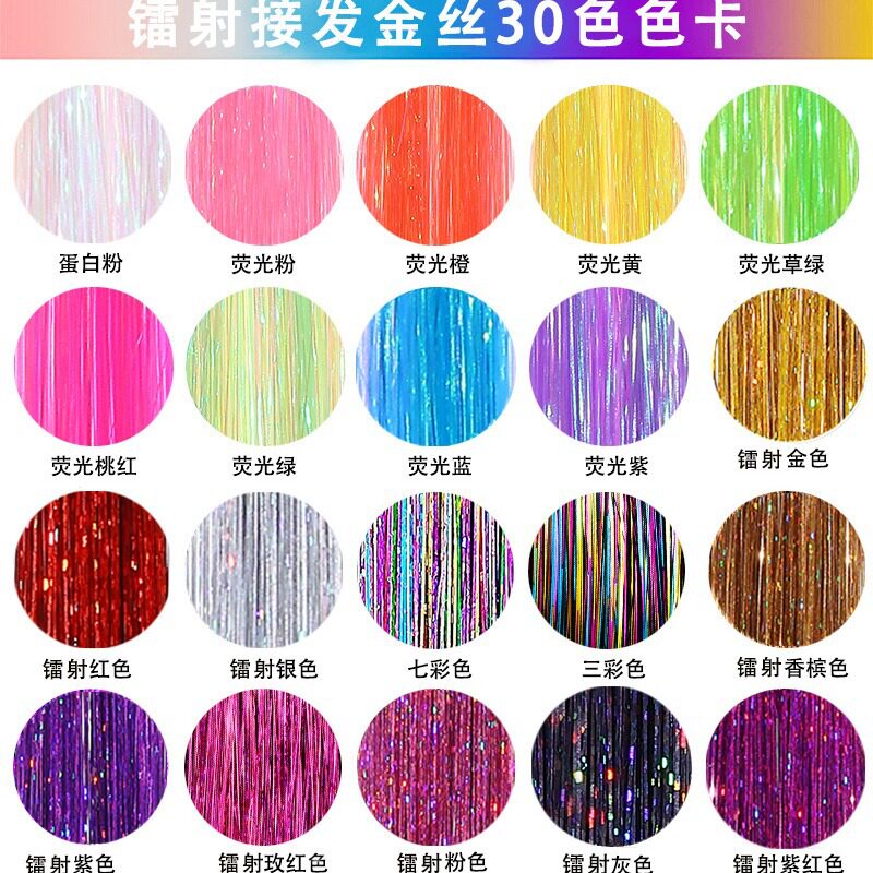 📚 镭射BB夹tinselhair金丝假发片闪光彩丝挑染隐形接发金丝编发发条