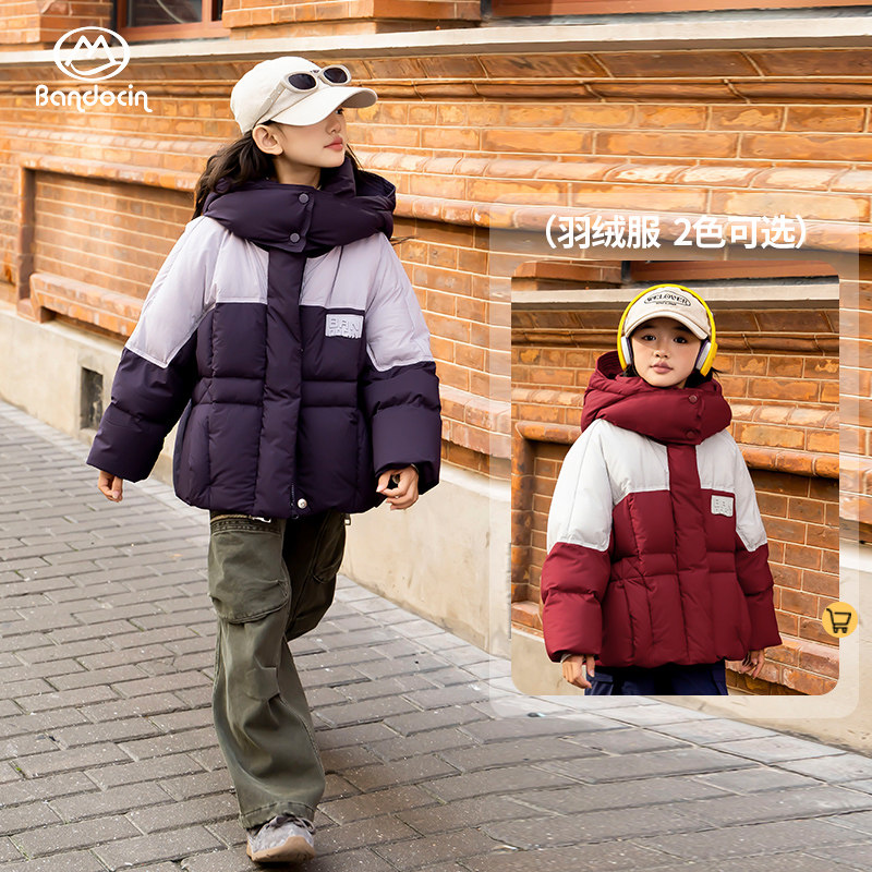 📚 半度闲女童羽绒面包服冬装短款儿童冬季加厚90白鸭绒外套