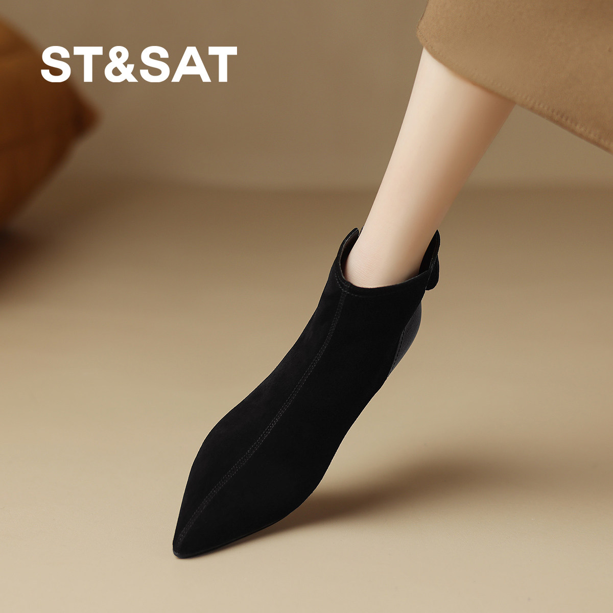 📚 星期六今年流行的靴子女爆款短靴粗跟时装靴秋冬配裙子高跟鞋皮鞋