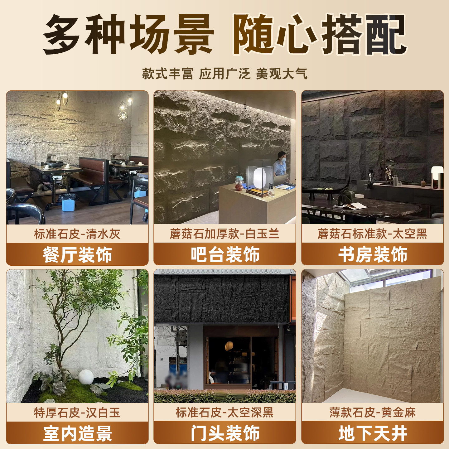 📚 pu石皮背景墙轻质天然文化石外墙砖蘑菇石PU仿石材大板石头墙岩板