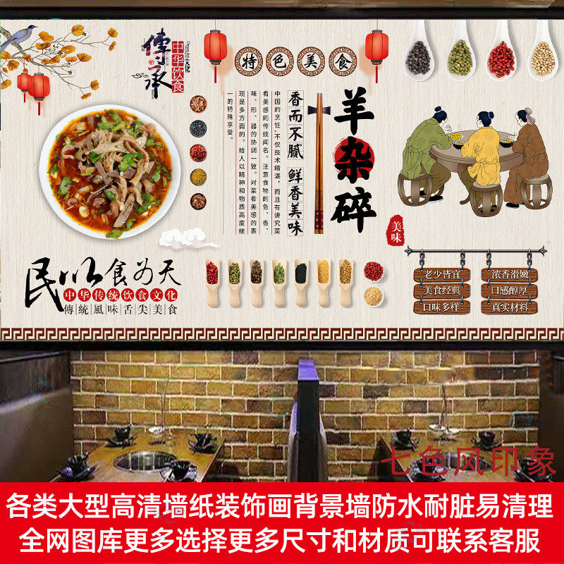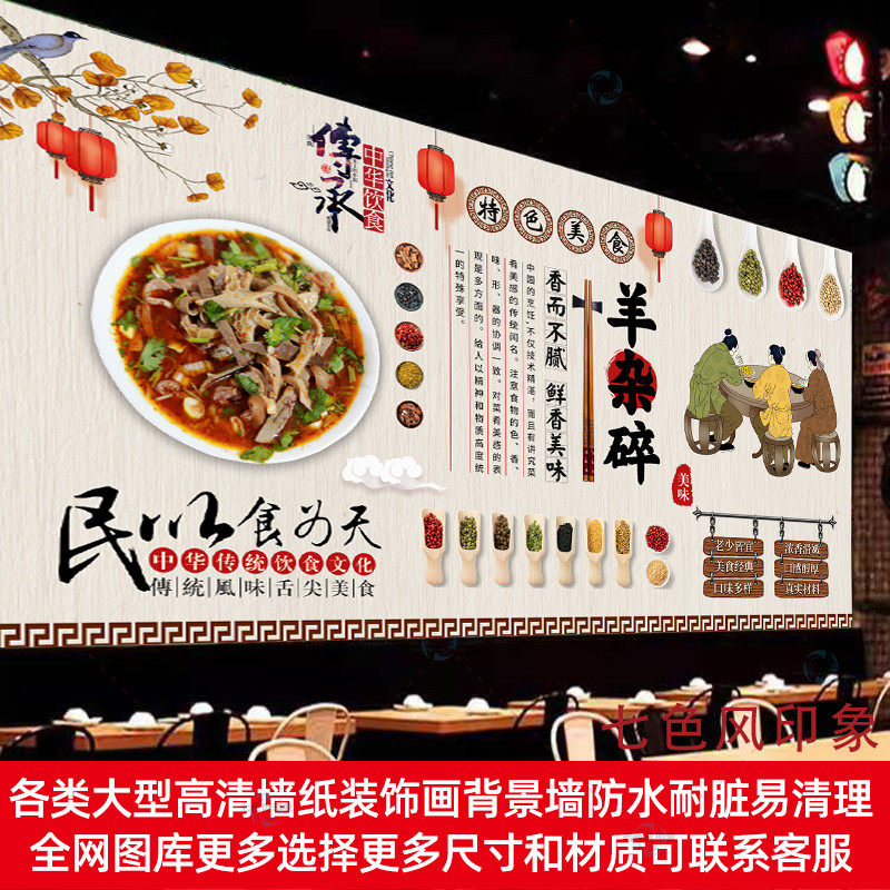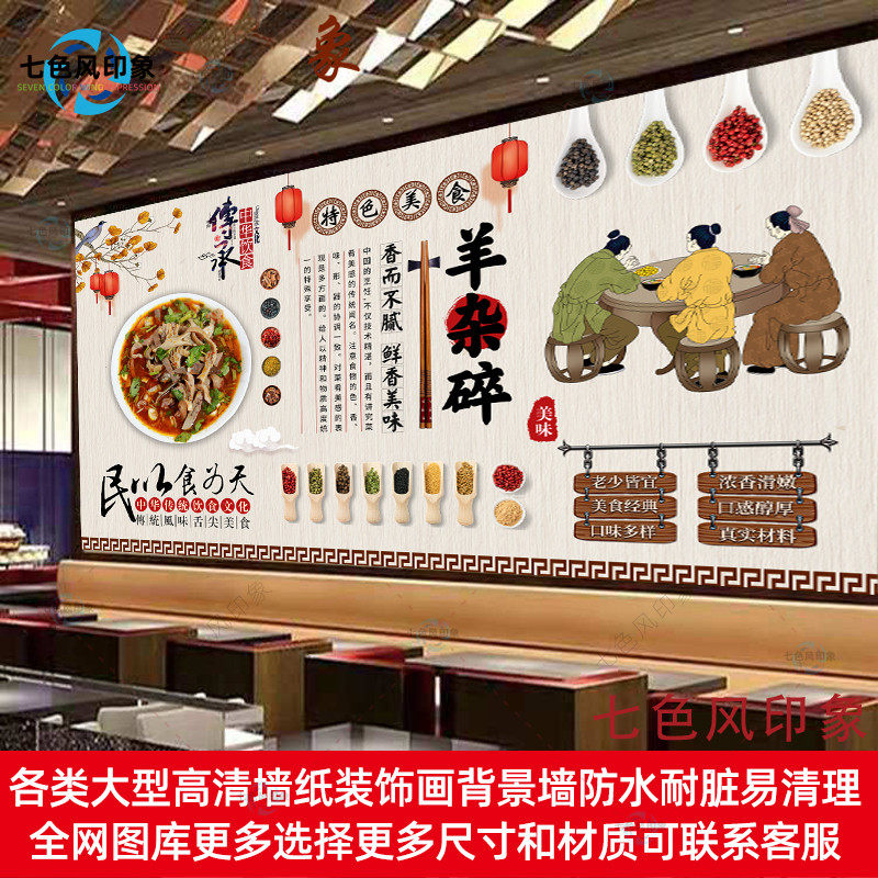📚 羊杂碎海报墙纸广告羊肉汤装饰画羊肉馆防水自粘贴画羊杂汤灯箱布