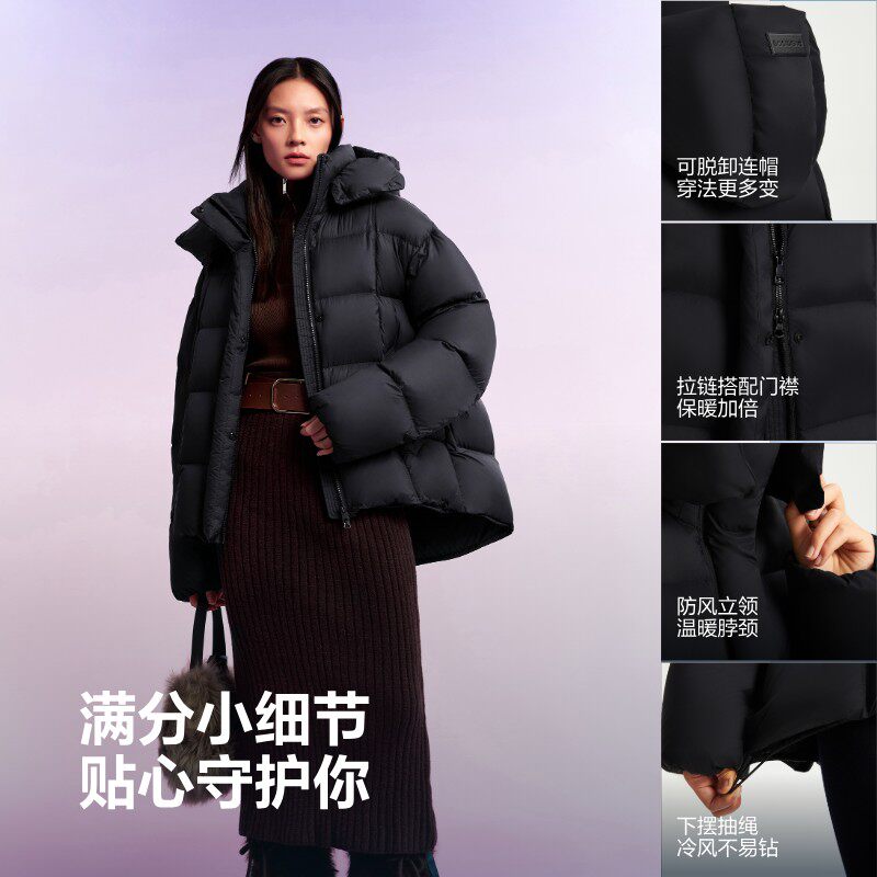 📚 波司登泡芙羽绒服2025冬季新款女短款可脱卸帽高充绒量小个子外套