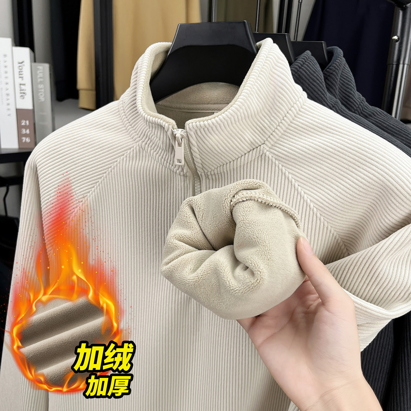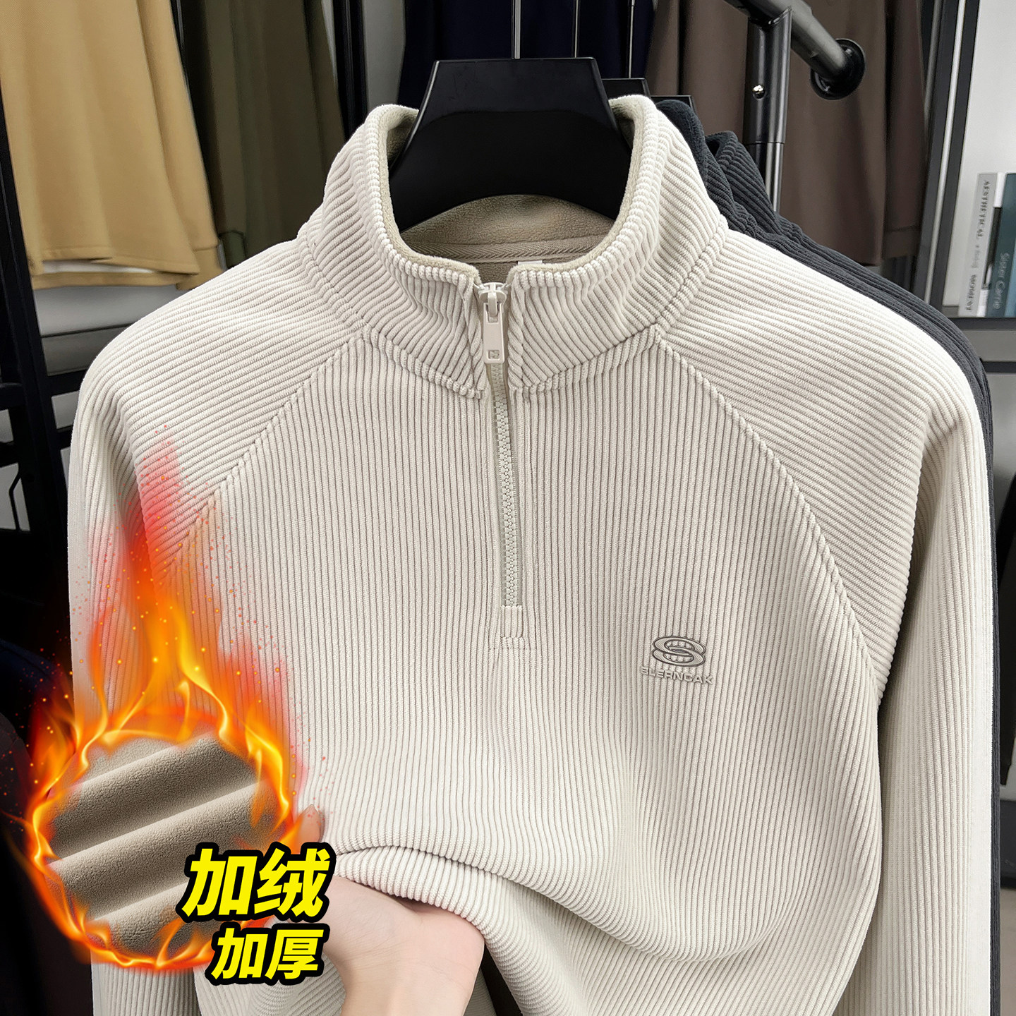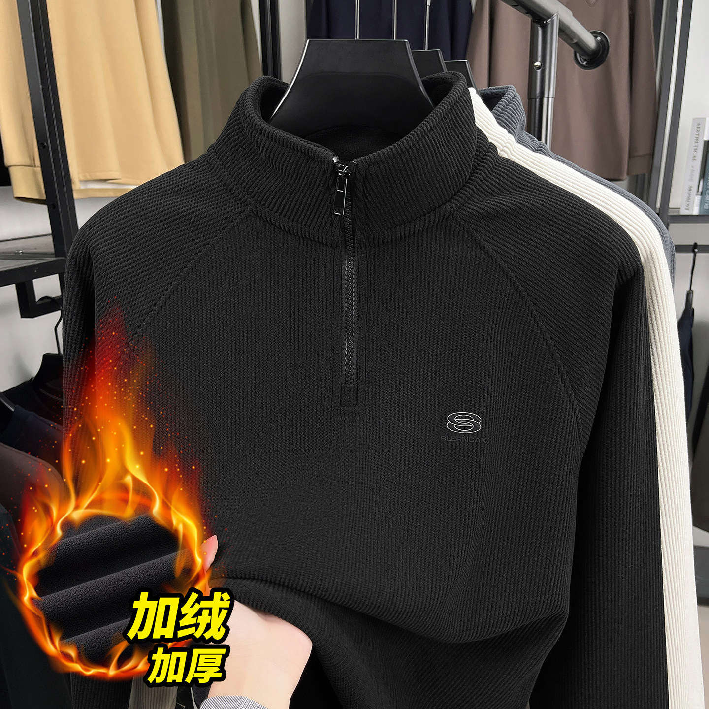 📚 拉链半高领卫衣男款加绒加厚秋冬季奥利绒休闲内搭t恤男长袖立领