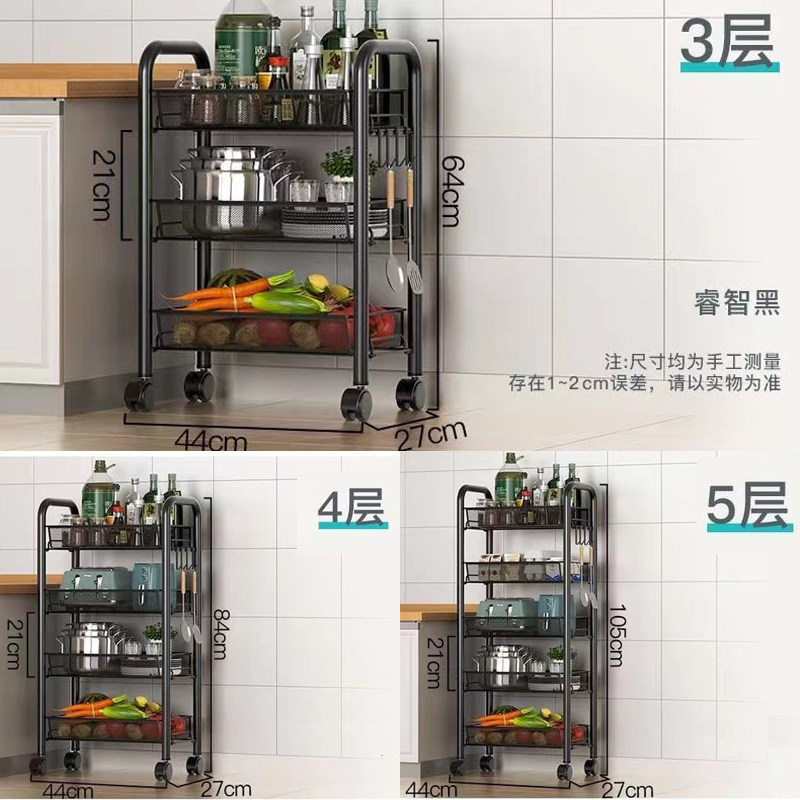 📚 小推车置物架厨房落地卧室多层零食架卫生间收纳架移动客厅放菜