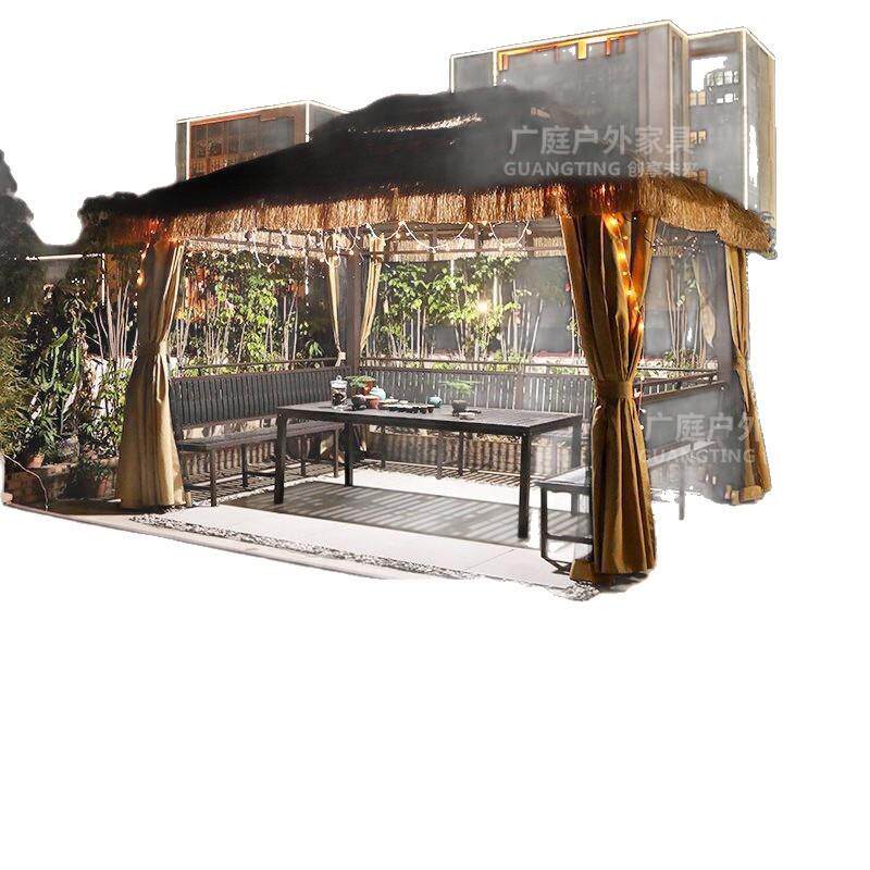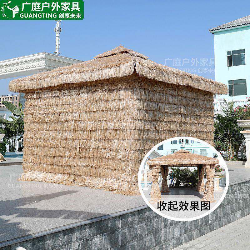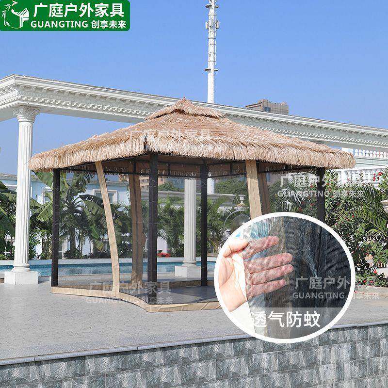 📚 广庭户外休闲家具凉亭茅草屋庭院农家乐露天毛草棚四角茅草亭