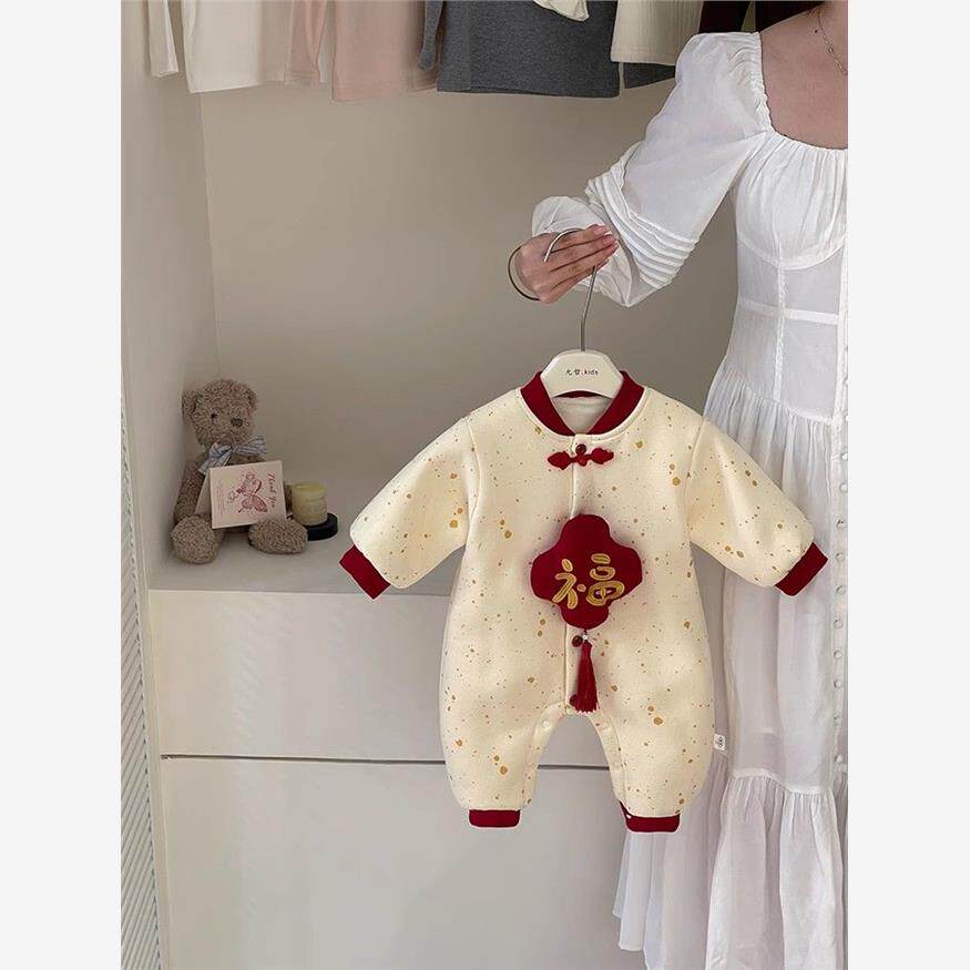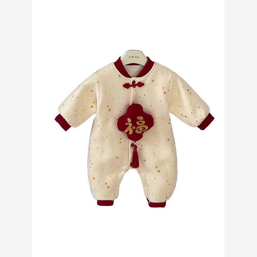 📚 婴儿国风福字拜年服宝宝连体衣秋冬哈衣加厚加绒爬服冬季周岁衣服