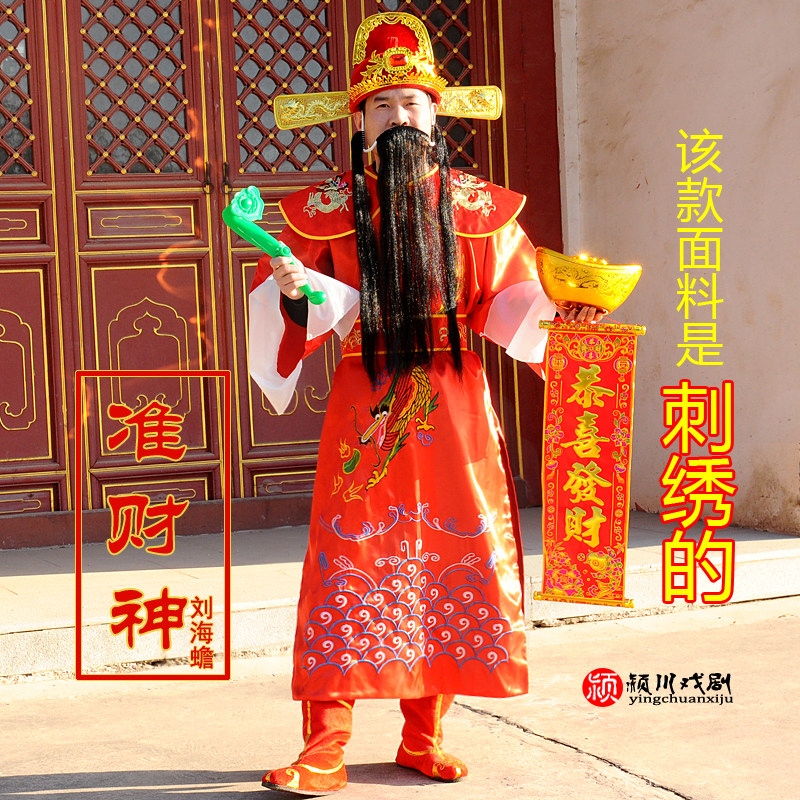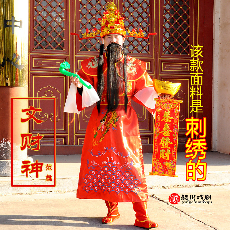 📚 财神爷服装衣服全套演出服成人男女开业庆典公司年会服装财神到帽