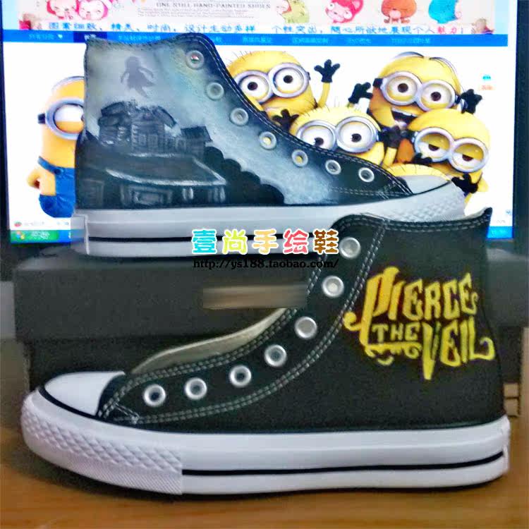 📚 欧美皮尔斯的面纱乐队手绘鞋Pierce The Veil涂鸦情侣鞋男女板鞋