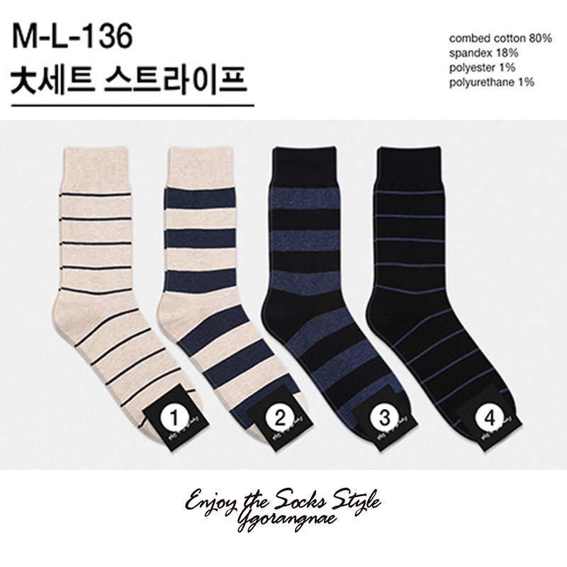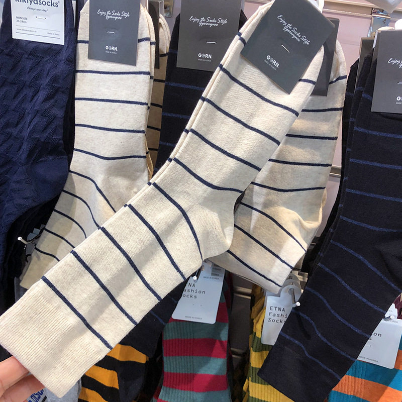 📚 韩国ggorangnae秋冬新款男士袜子英伦风拼色条纹中筒棉袜2122