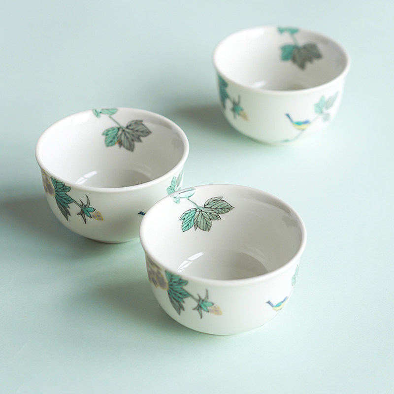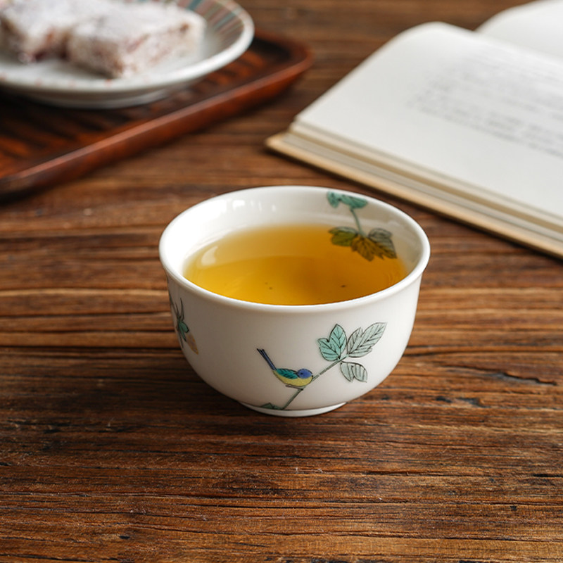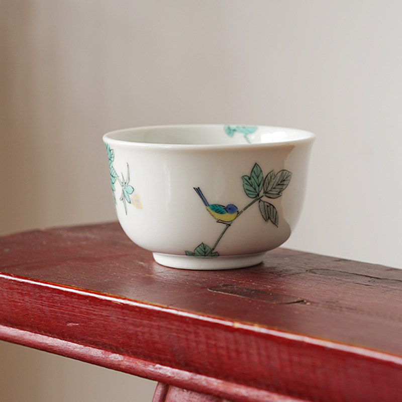 📚 日本进口九谷烧小鸟茶杯日式陶瓷彩绘小鸟功夫茶杯主人杯水杯品茗