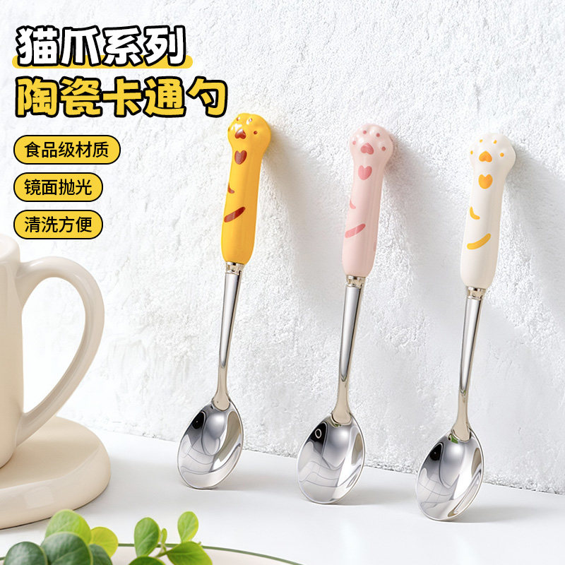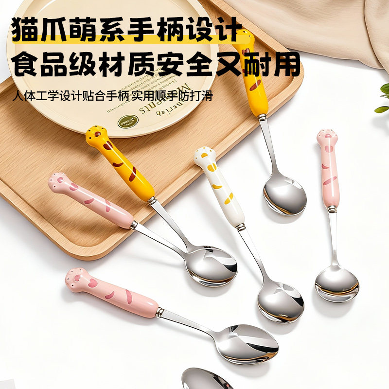 📚 不锈钢小勺子个人专用女士高颜值餐勺可爱吃饭长柄搅拌咖啡甜品勺