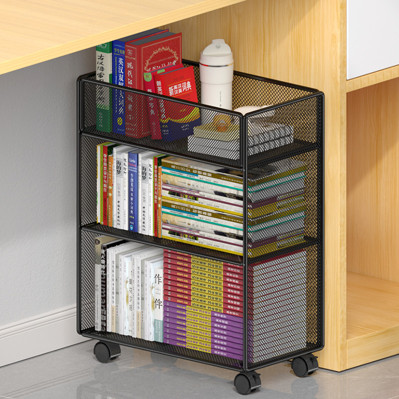 📚 移动书架学生书本简易置物架桌下落地小推车书柜带轮书籍收纳架