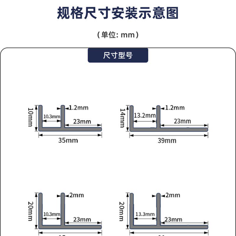 📚 F型加厚淋浴房玻璃嵌条铝合金U型卡槽防水条凹槽预埋件木板条包边