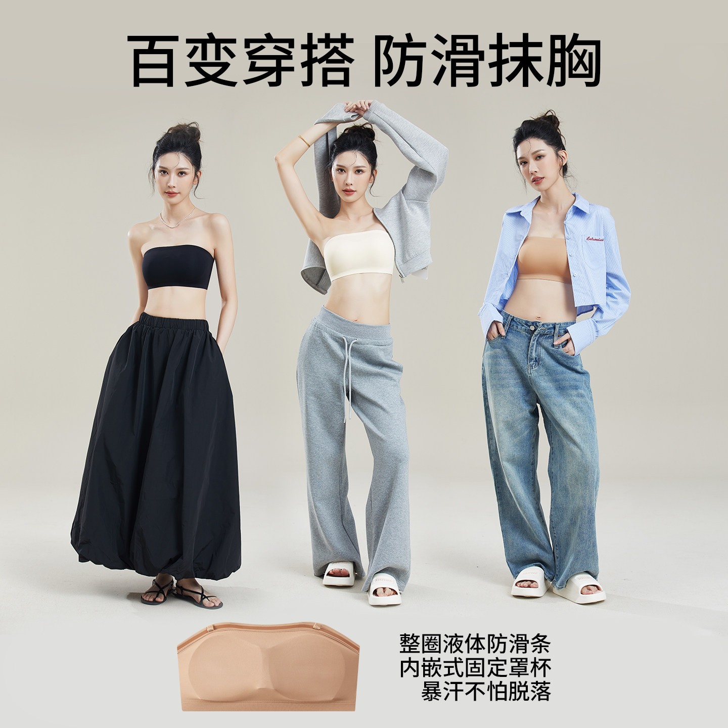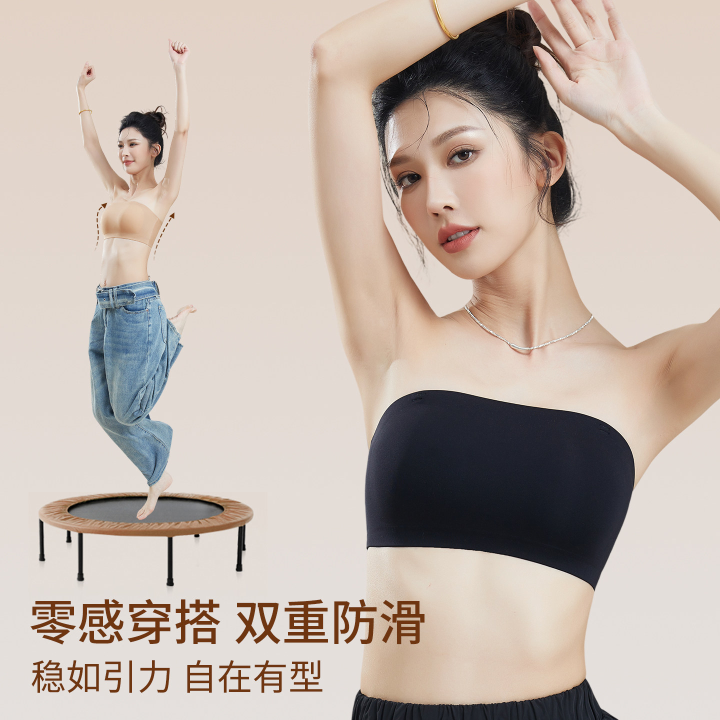 📚 婚纱舞蹈生专用内衣少女粉底液无痕无肩带抹胸防滑内搭一片式文胸