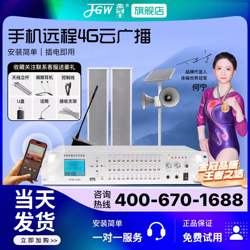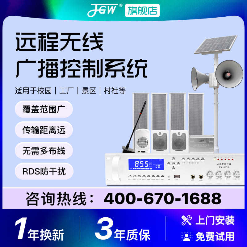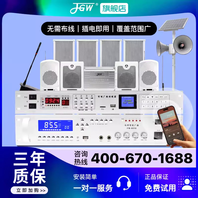 📚 无线广播系统套装4G智能高音号角喇叭扬声器防水村村通调频发射机
